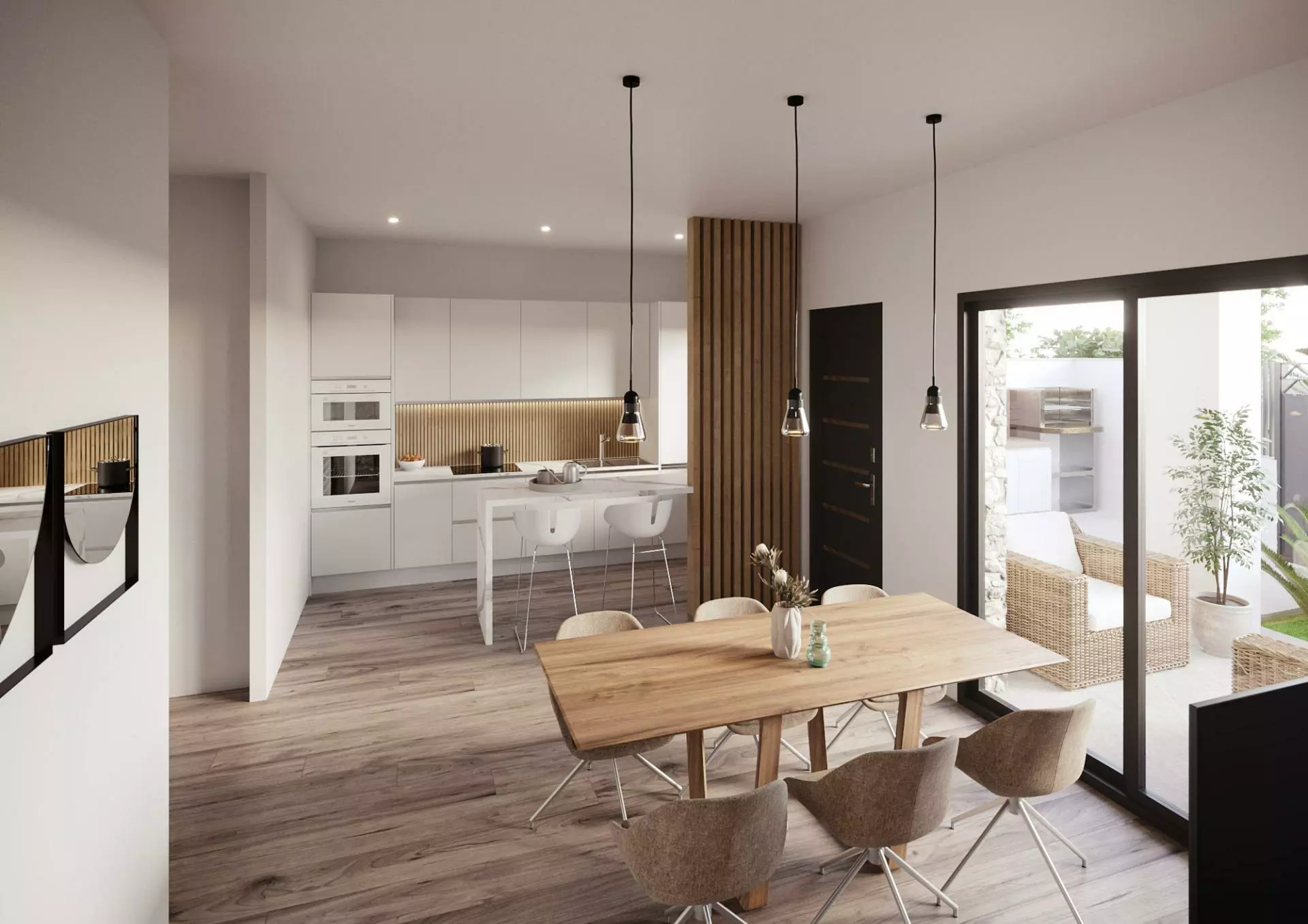 These bungalows consist of 3 bedrooms, each equipped with fitted wardrobes, making storage straightforward. There are also 2 bathrooms, a large living room, a fitted kitchen, and a terrace for outdoor space. Home buyers can choose between ground floor units that come with front and rear terrace/garden or top floor units featuring a terrace and private solarium.