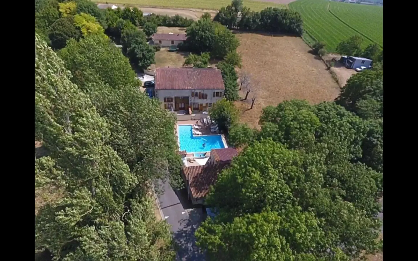 This single-story light filled home, would be ideal for someone with reduced mobility or a family, looking for a property to successfully manage as a seasonal rental. Situated on a generously sized plot with a private driveway, it offers excellent privacy from the holiday cottages. The south-facing covered terrace is a real sun trap during the many sunny days in this region, the second sunniest in France. In cooler weather, you’ll appreciate the comfort of the house, which is equipped with double glazing. There’s a fireplace which can be restored and fitted with a wood-burning stove. Two of the cottages overlook the swimming pool and the other two overlook the garden, each with its own private courtyard. A communal area is also available for guests, featuring a bread oven that’s much appreciated for baking pizzas on warm summer evenings! The large heated swimming pool (66 m²) with its jacuzzi is a major draw for both children and adults, thanks to its varying depth from 30 cm to 2 meters. The property is fenced and equipped with a security alarm, but some holidaymakers with young children choose to stay in the two cottages without direct access to the pool. Older children and adults enjoy the direct access from the two other houses and from the barn, which has been converted into a games room. The property is located in a small, quiet hamlet, 13 minutes from Saint-Jean-d’Angély, a charming historic town, and an hour from the coast and La Rochelle airport.