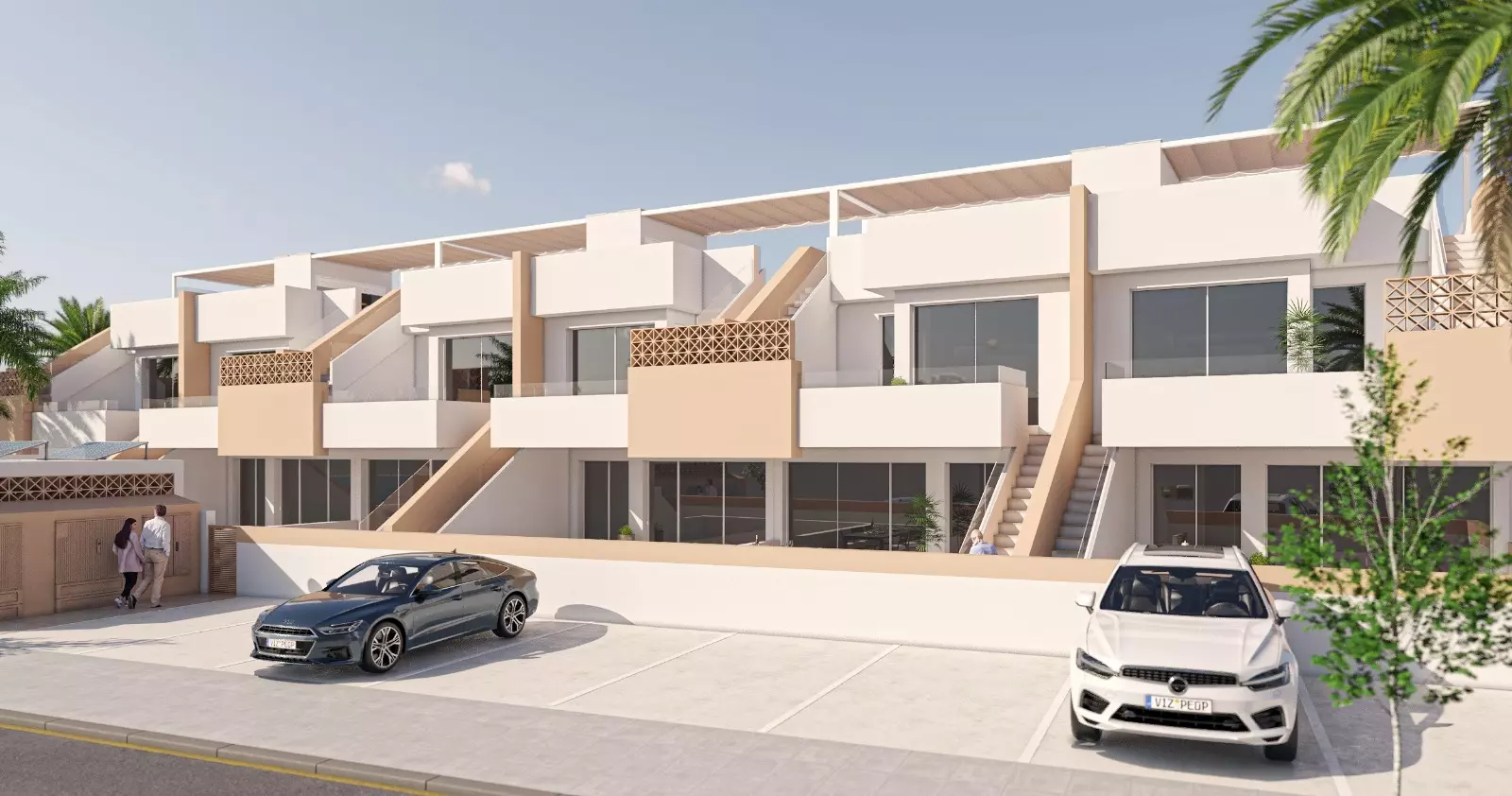 Discover a boutique residential complex consisting of 12 new build bungalows in Pilar de la Horadada, located at the southern tip of the Costa Blanca. This area is known for its balance of peaceful Mediterranean living alongside convenience. Essential services, shops, restaurants, and various amenities are all within walking distance. The sandy beaches of Torre de la Horadada and Mil Palmeras are approximately 3 kilometers away, making them perfect locations for beach days or engaging in water sports.