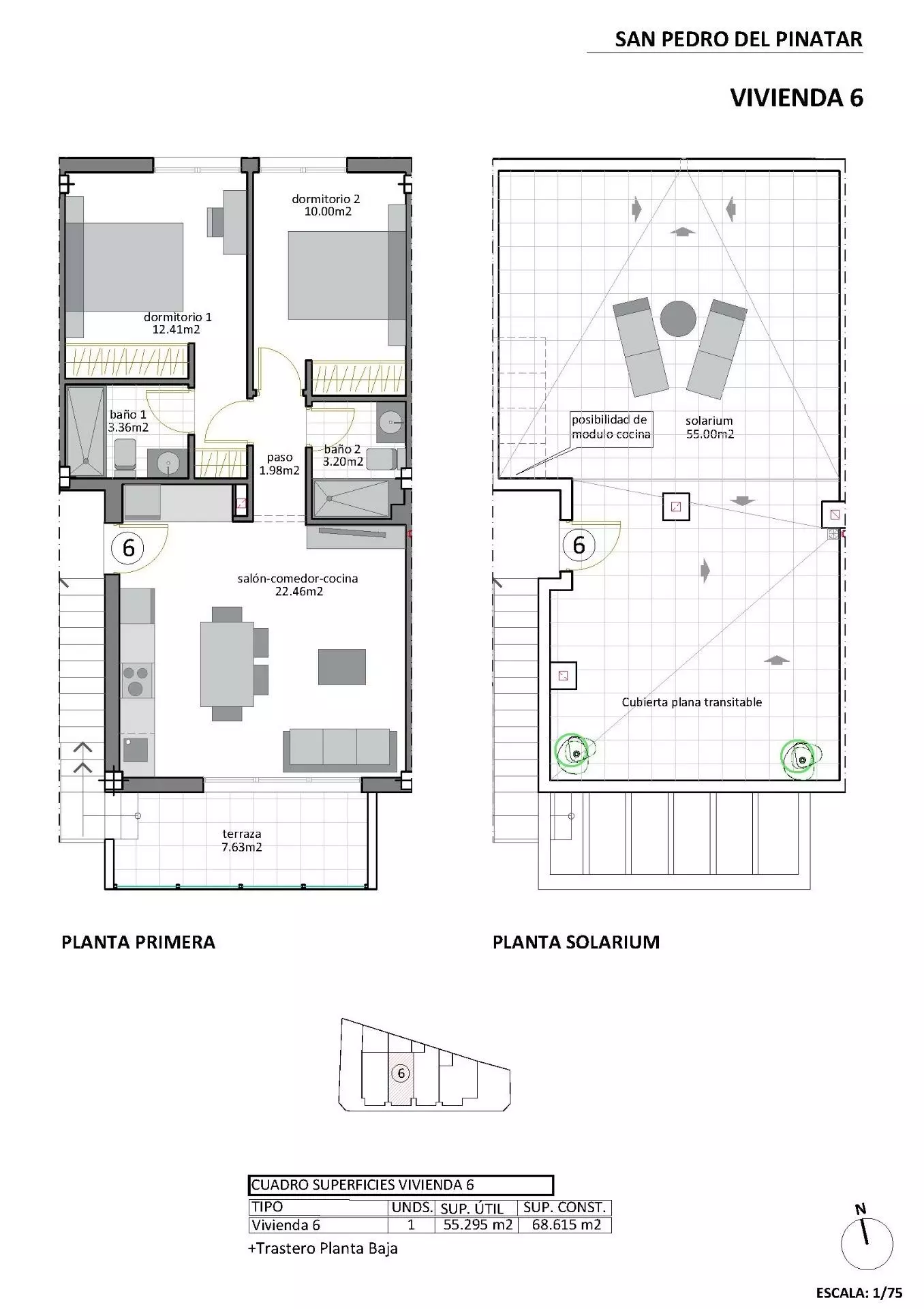 Explore these new construction bungalows located in San Pedro del Pinatar, just 500 meters from the Mar Menor beaches. This development features eight homes designed for owners who appreciate modern aesthetics combined with the convenience of coastal living.