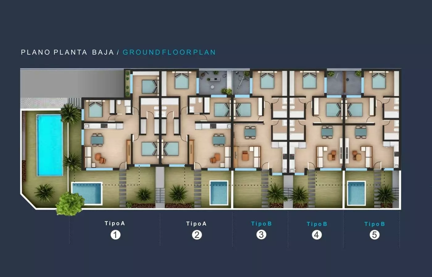 This development features 2 and 3 bedroom bungalows that come in two configurations.