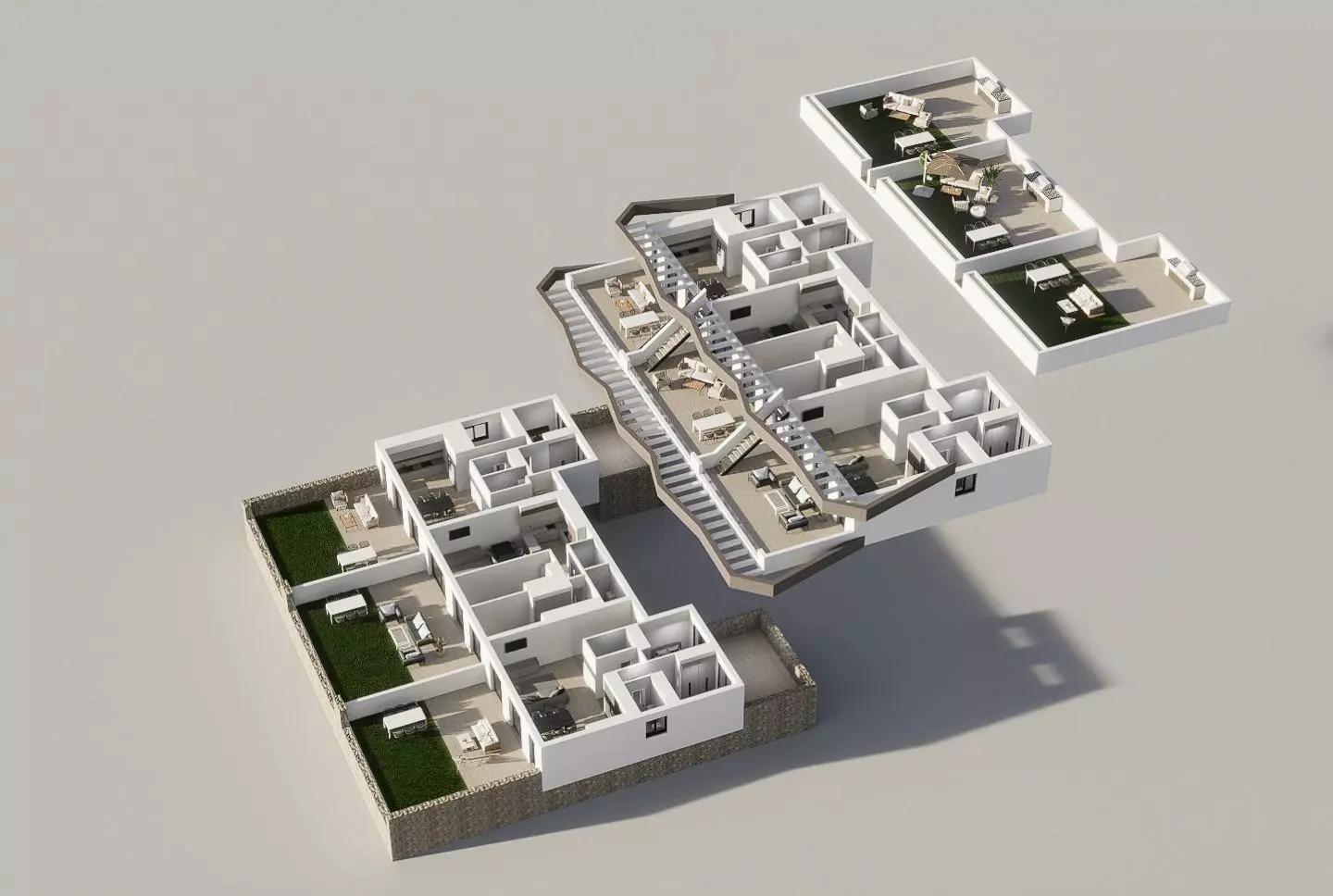 Prospective buyers can select from various layouts, including top-floor bungalows equipped with a private solarium or ground-floor bungalows that come with a private garden and the option to add a private pool. The construction emphasizes high-quality materials that enhance the living experience, maximizing natural light during daylight hours. Each unit includes large terraces suitable for enjoying the 320+ days of sunshine that Alicante typically offers each year.