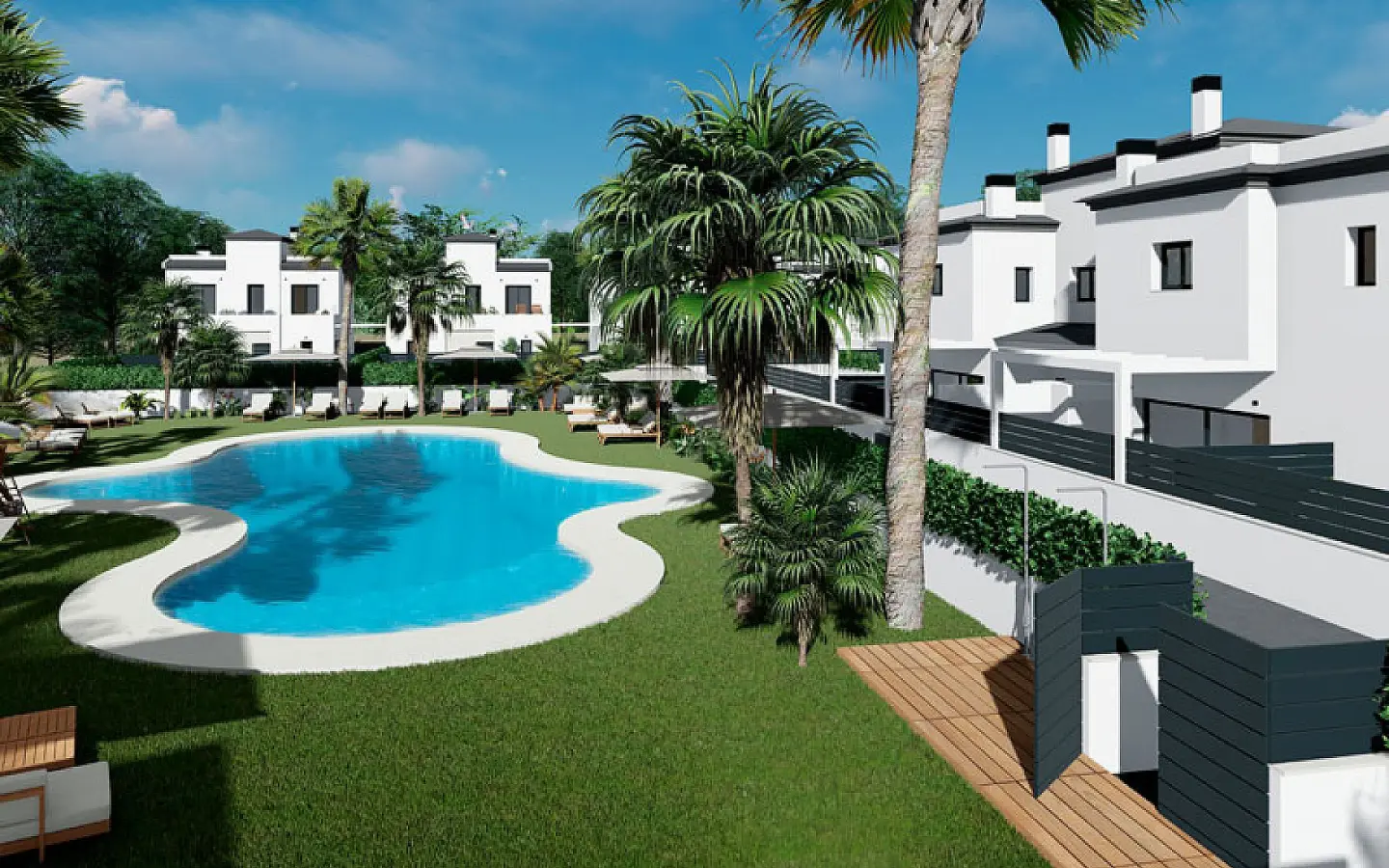 These bungalows start at a comfortable 93m² and include gardens starting at 64m². Choose between 2 or 3 bedrooms depending on your lifestyle and family needs. This residential area operates as a private urbanization, ensuring a peaceful living environment complemented by various amenities. Enjoy shimmering swimming pools and children’s play areas ideal for relaxing with family and friends.