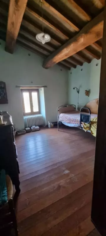 Toscana, Monterchi, loc. Fonaco Nel comune di Monterchi, posizione collinare, casale completamente ristrutturato nel 1997; successivamente rifatto tetto con isolante e guaina catrame. Il consolidamento è stato fatto con lavaggio muro interno e iniezione di cemento liquido. Il fabbricato su due piani: PT: ingresso con forno, cucina con termostufa, soggiorno con caminetto, camera e bagno. PS: grande soggiorno due camere, bagno. Dall’esterno si accede al locale tecnico. Il riscaldamento è fornito sia da una termo cucina che caldaia a gas con bombolone esterno; l’acqua è garantita dal condotto comunale che da un pozzo privato. Esternamente vi è un annesso ristrutturato predisposto per ricavare un monolocale. Terreno circostante circa 35000 mq, Il viale di accesso è privato e delimitato da cipressi. Rich. 300.000.