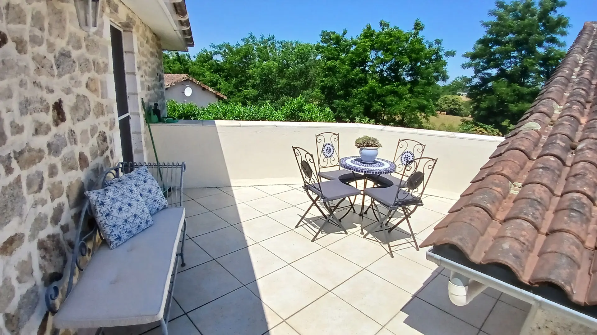 Behind the house, through the garage, you can take an easy stroll down a pathway to the village where you will find an excellent restaurant, a bakers, and a butchers. The village is a short drive to the popular market town of Piegut with a supermarket, bars, and restaurants, and the city of Angouleme is 40 minutes away. There is a beautiful lake beach at St Estephe with a snack bar, restaurant, and canoes. You can walk around the lake and the surrounding area and it’s very popular in the tourist season.