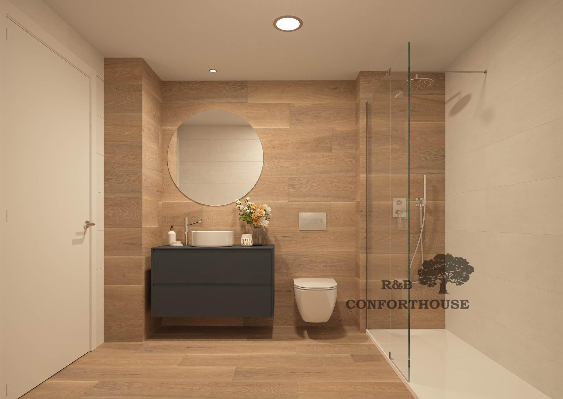 Stepping inside, you’ll find top-notch flooring, whether it’s high-quality laminated or porcelain tiles. The bathrooms have stylish porcelain fixtures with contemporary monobloc faucets for added elegance. Your kitchen will come fully equipped with stunning countertops, modern kitchen furniture, and all the essential appliances, including an induction cooktop and electric oven.