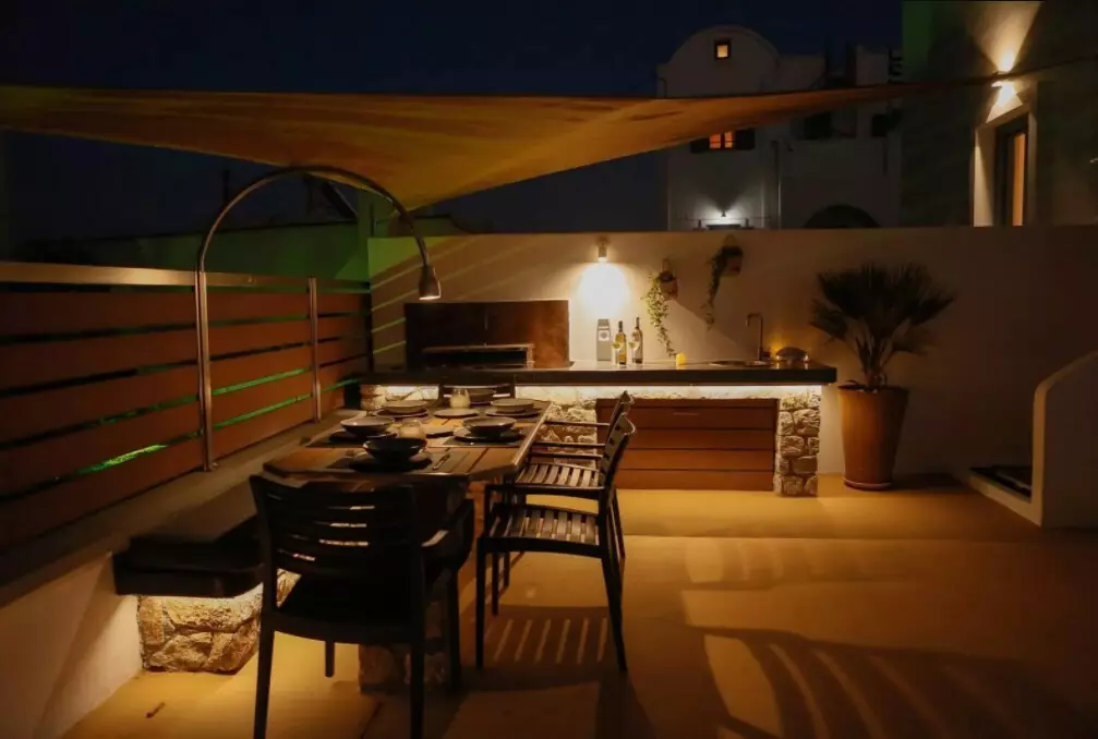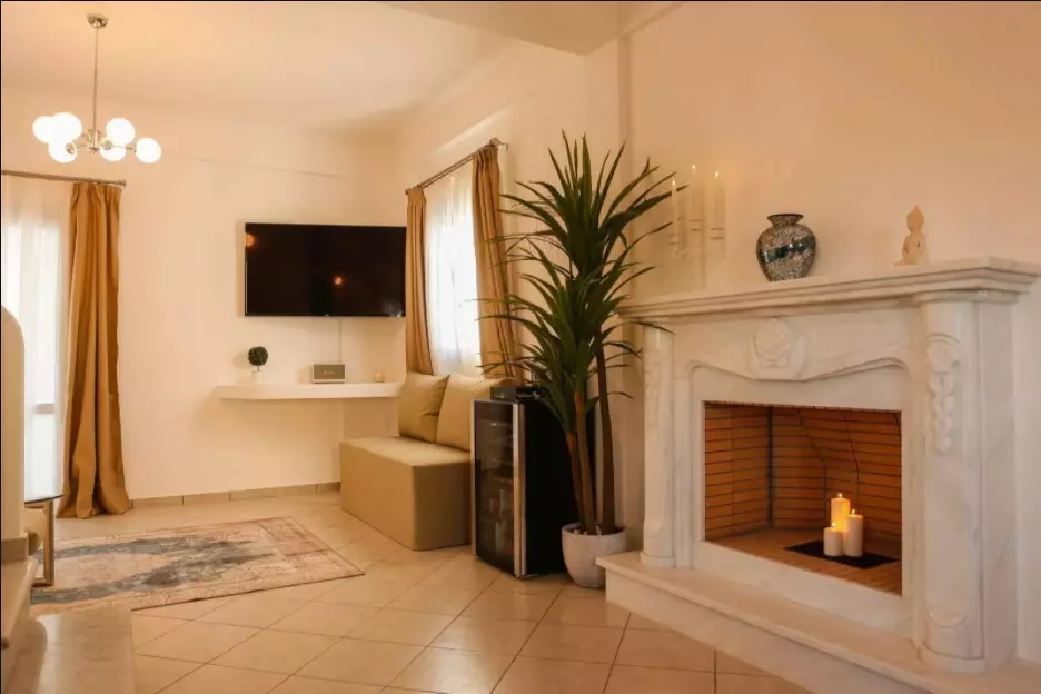 On the ground floor, you’ll find another stylish bedroom, a spacious living room with a kitchen, a bathroom, a convenient WC, and another storeroom. This layout is ideal for entertaining friends and family or simply enjoying quiet nights in.