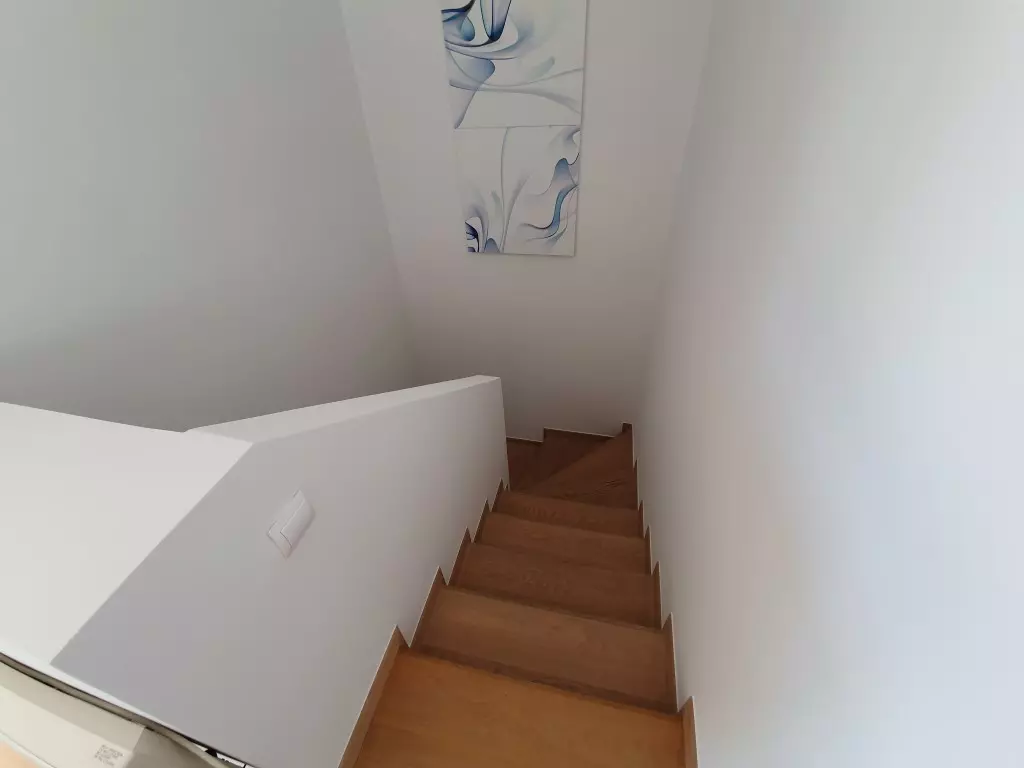 Venture up to the ground floor, where the living room harmoniously meets the kitchen, creating an open and inviting space for entertaining or relaxing. There’s also a conveniently placed WC, making it easy for guests to access without disturbing your private areas.
