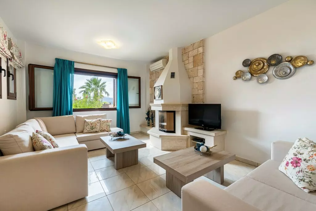 On the ground floor, you’ll find a comfortable bedroom, a bright living room that flows seamlessly into the kitchen, and a convenient shower WC. The layout is great for entertaining, as you can easily host friends and family while enjoying those fresh Cretan breezes.