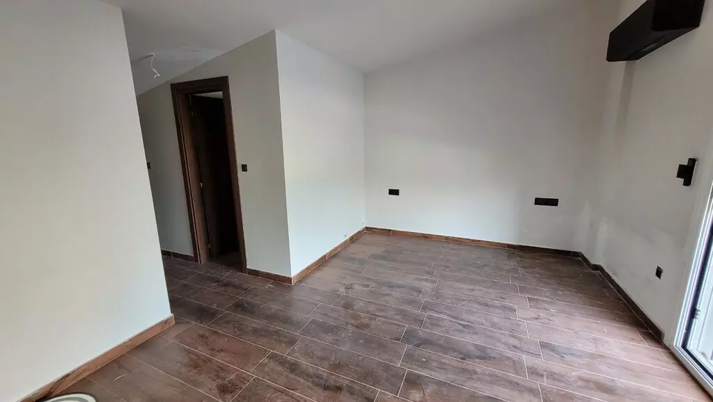 This duplex spans the second and third floors, providing a spacious layout ideal for both relaxation and entertaining. On the second floor, you’ll find a cozy bedroom, a living room seamlessly integrated with the kitchen, and a convenient shower WC. The design not only maximizes space but fosters a warm atmosphere, perfect for family gatherings or quiet nights in.