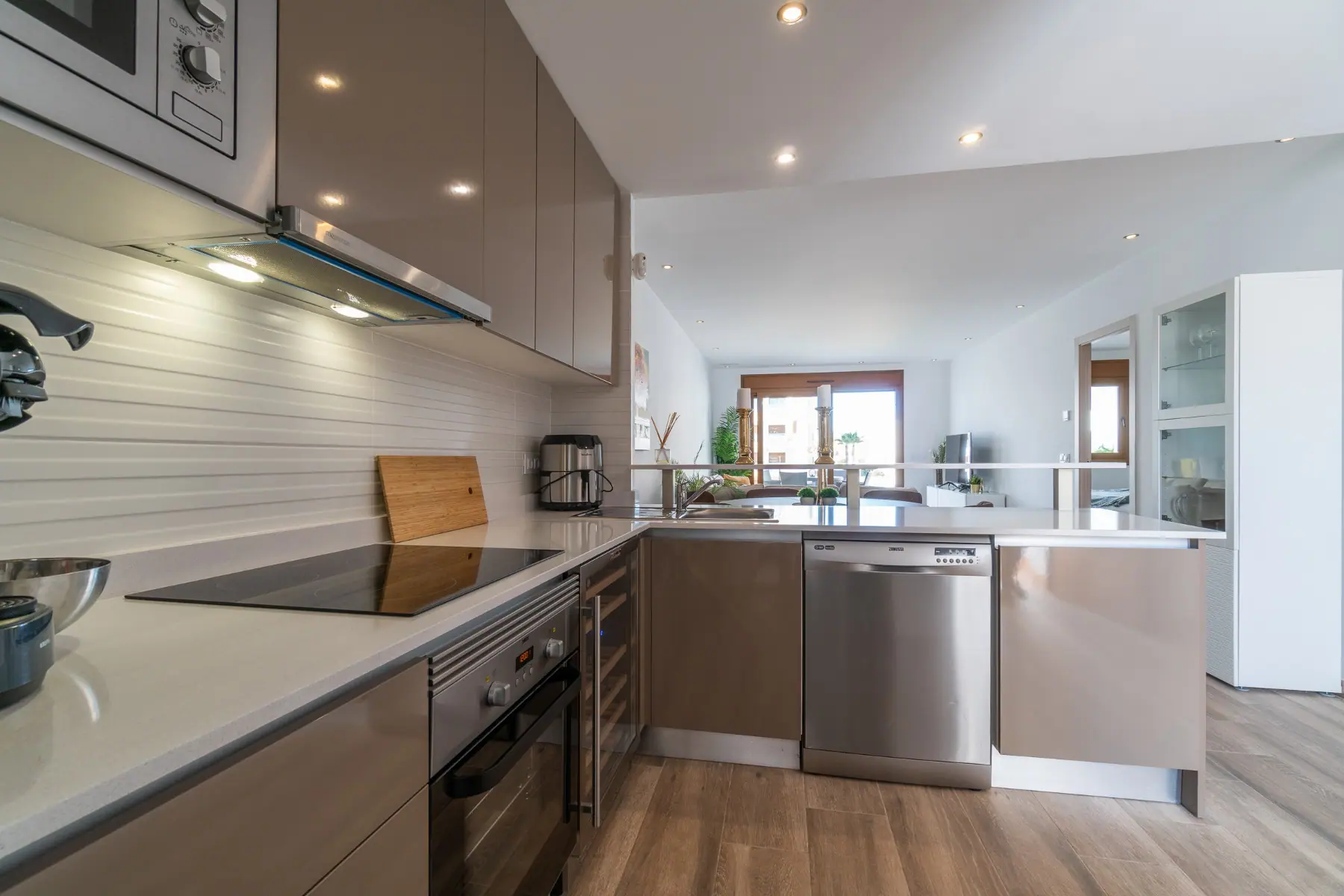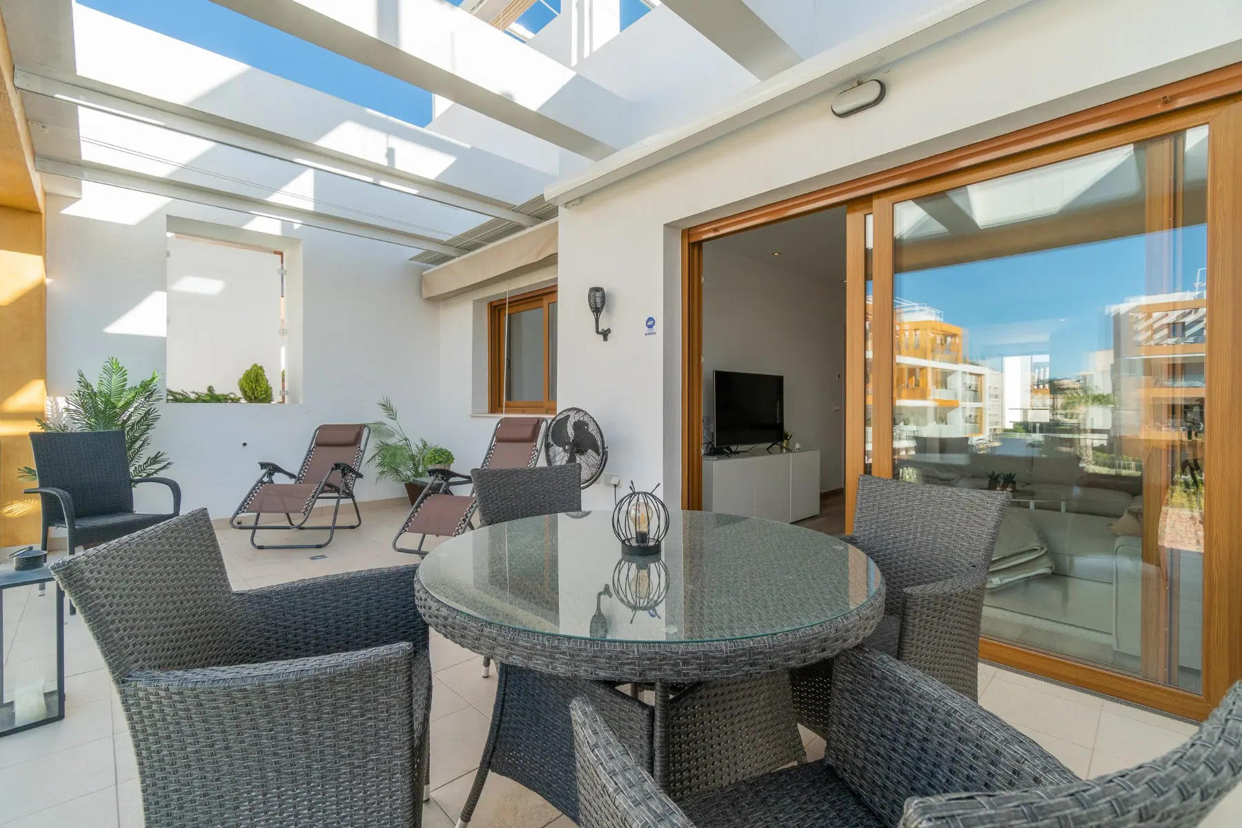This elegant penthouse features three generous bedrooms and two stylish bathrooms, perfect for family living or entertaining guests. The heart of the home is undoubtedly the fully fitted modern kitchen equipped with all the essential white goods. Imagine whipping up a delicious meal while being a part of the open-plan living and dining area that flows effortlessly onto a spacious 23 m² terrace.