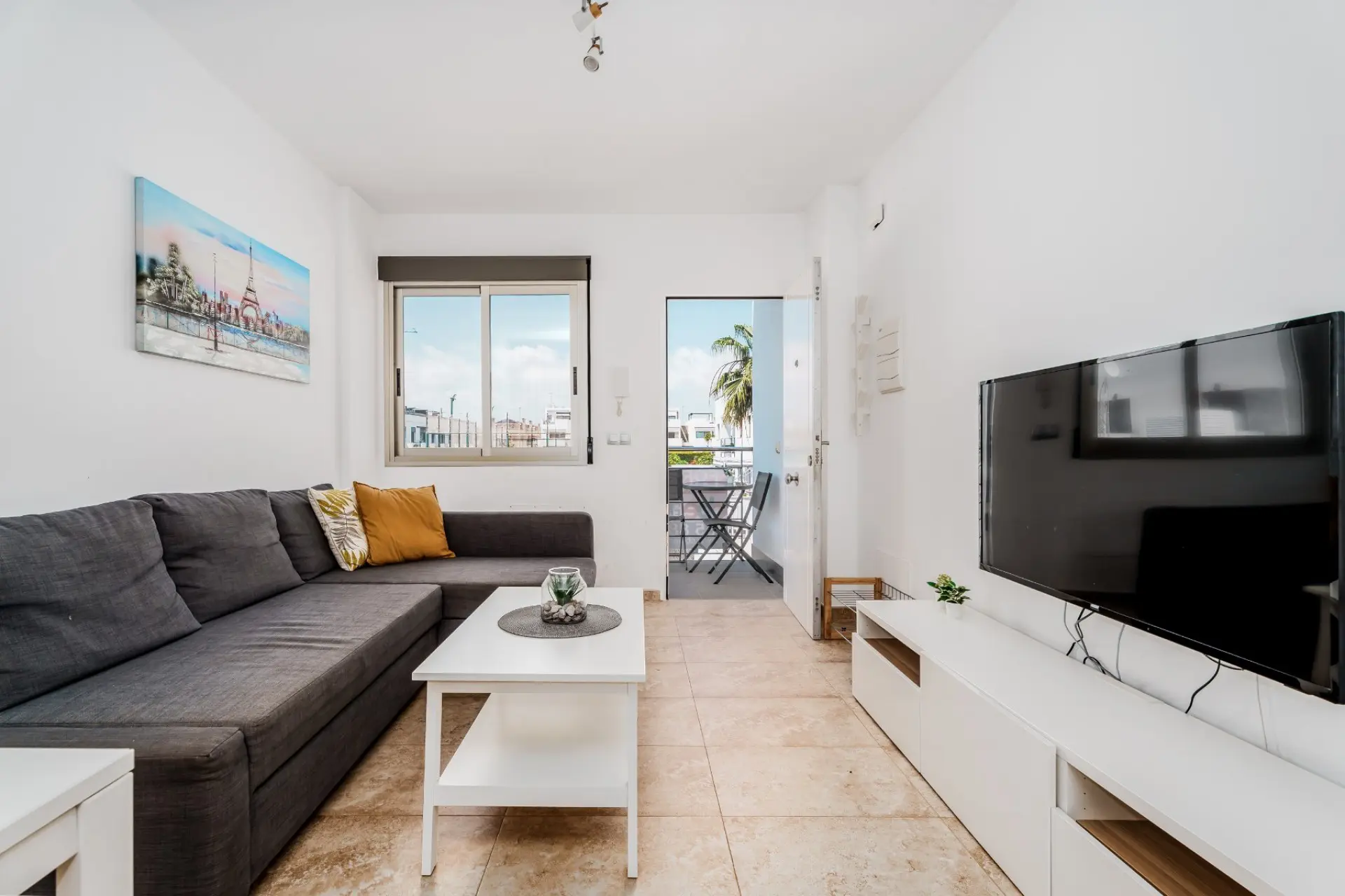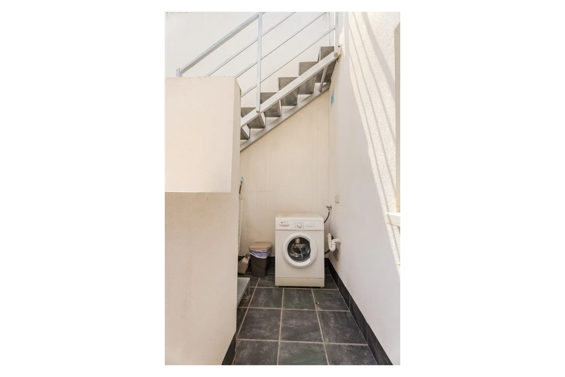 This property shines with natural light and a functional design. As you step inside, you’ll find a cozy living room seamlessly integrated with a well-equipped kitchen. This open layout maximizes space and is ideal for entertaining or simply enjoying a quiet night in. The kitchen not only provides functionality but also adds a touch of style to your home. From the living room, you can easily access the splendid private rooftop terrace. Whether you want to bask in the Mediterranean sun or host friends and family, this space is your go-to spot.