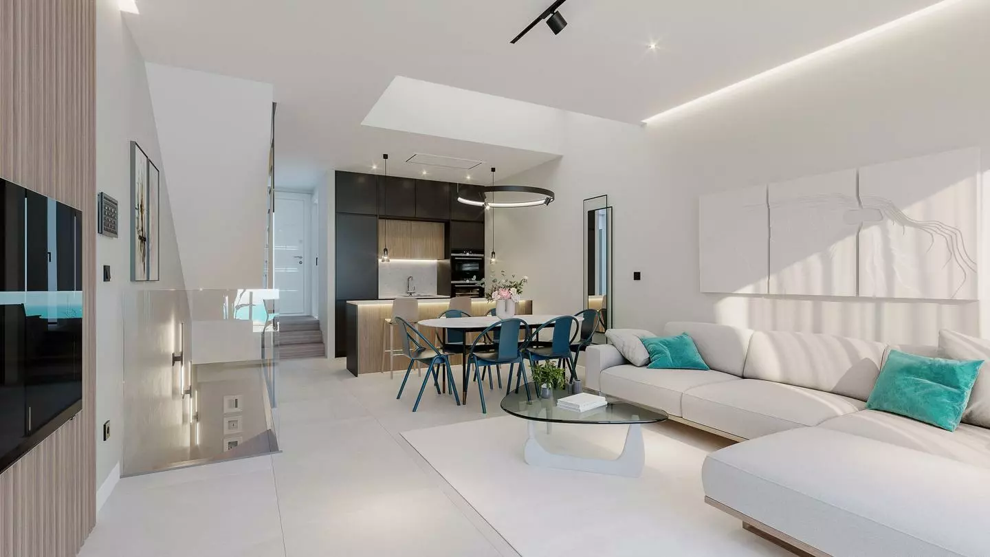 The layout is truly remarkable. Each unit spans four floors, boasting a double-height living room that seamlessly flows out to a private terrace and garden. These outdoor spaces are designed for relaxation and social gatherings, perfect for those sunny Mediterranean days.