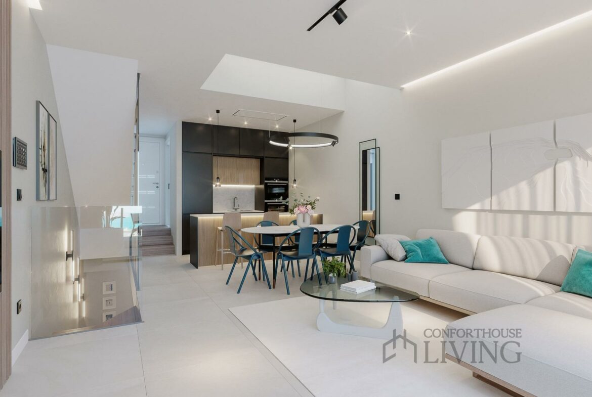 Imagine waking up to panoramic sea views every morning, thanks to the expansive windows that allow natural light to flood in. Each property at Azure Bay merges contemporary architecture with the surrounding natural beauty, giving you that daily dose of paradise. This collection features residences spread over four floors, each boasting three spacious bedrooms, two bathrooms, and a convenient guest toilet. Not to mention, a large basement, private parking, a cozy garden, a solarium, and multiple terraces for your enjoyment.