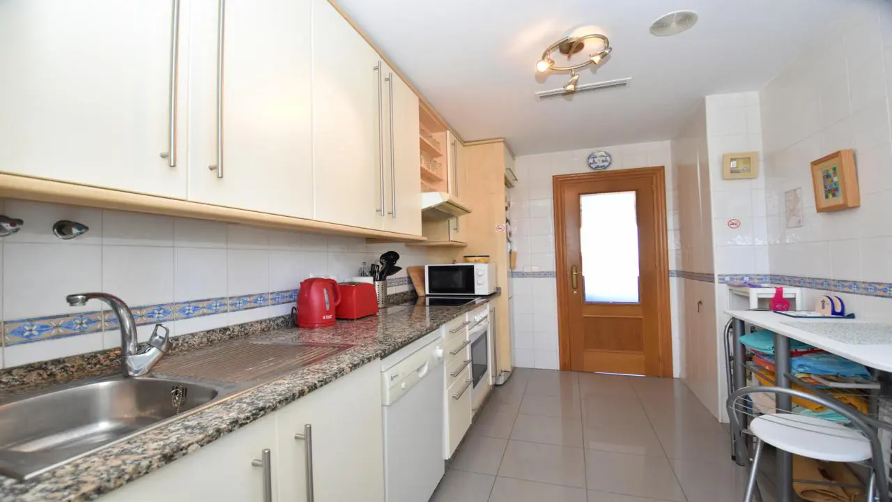 As soon as you step inside, you’ll be greeted by a bright and airy living room that flows effortlessly onto a spacious terrace. Imagine sipping your morning coffee or enjoying a glass of wine in the evenings, all while taking in those gorgeous Mediterranean Sea views. The independent kitchen is not only generous but fully equipped with high-quality appliances, perfect for whipping up your favorite meals. Plus, there’s an adjoining laundry room for added convenience.