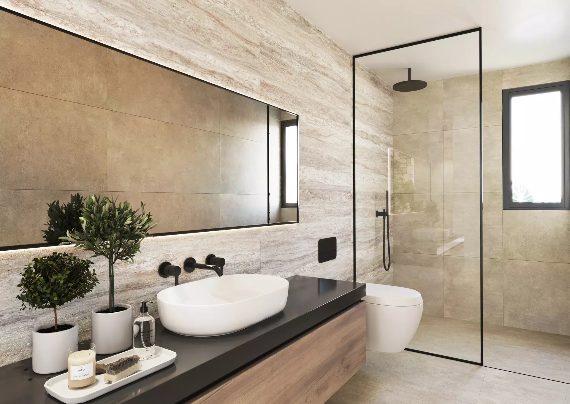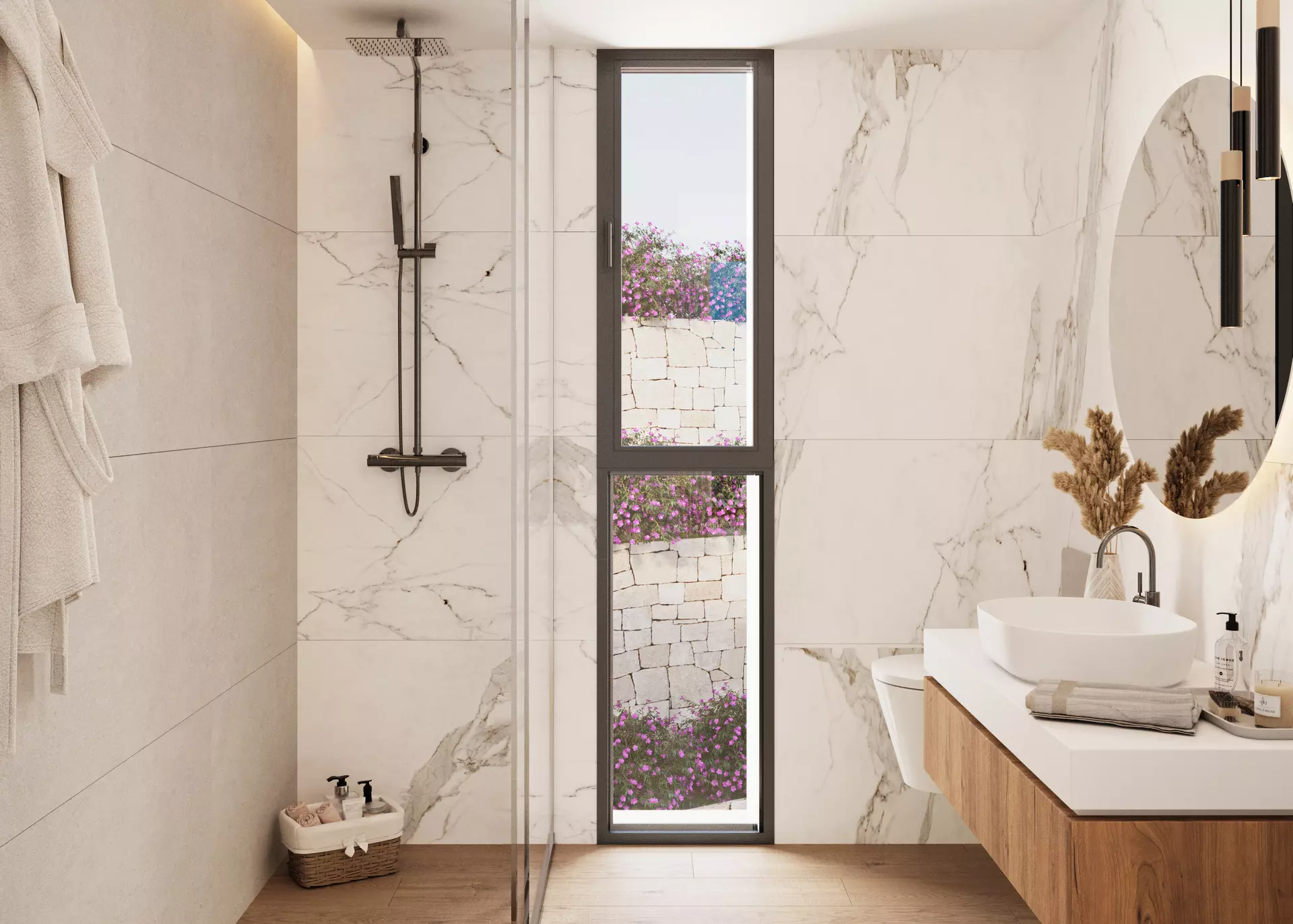The bathrooms also add a touch of luxury, with finishes that spark joy and relaxation. Plus, every villa includes a parking space, ensuring convenience for you and your guests. With ample light flooding these spacious, beautifully designed interiors, you’ll find it easy to relax and unwind. High-quality finishes showcase contemporary design, making every corner feel inviting.
