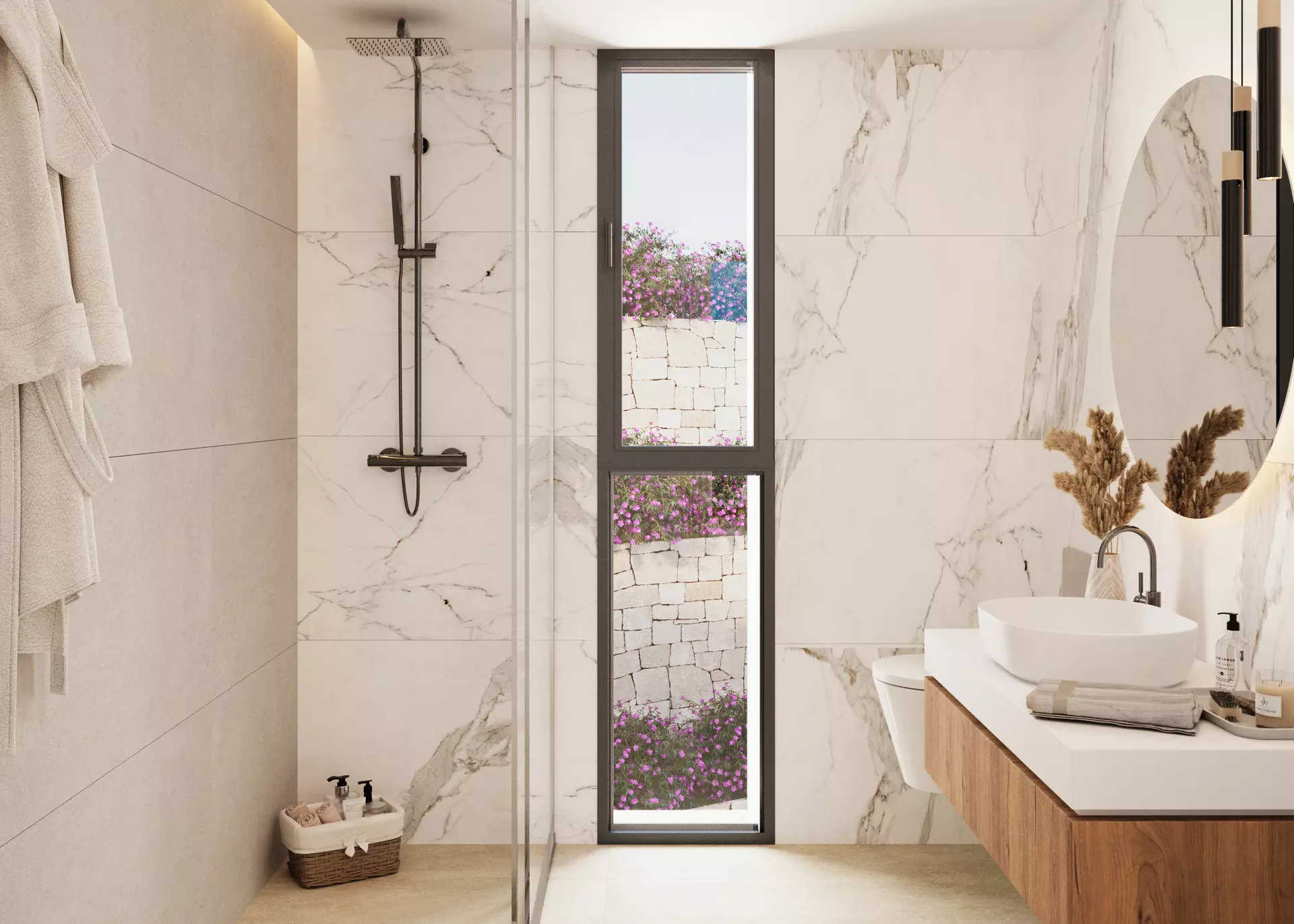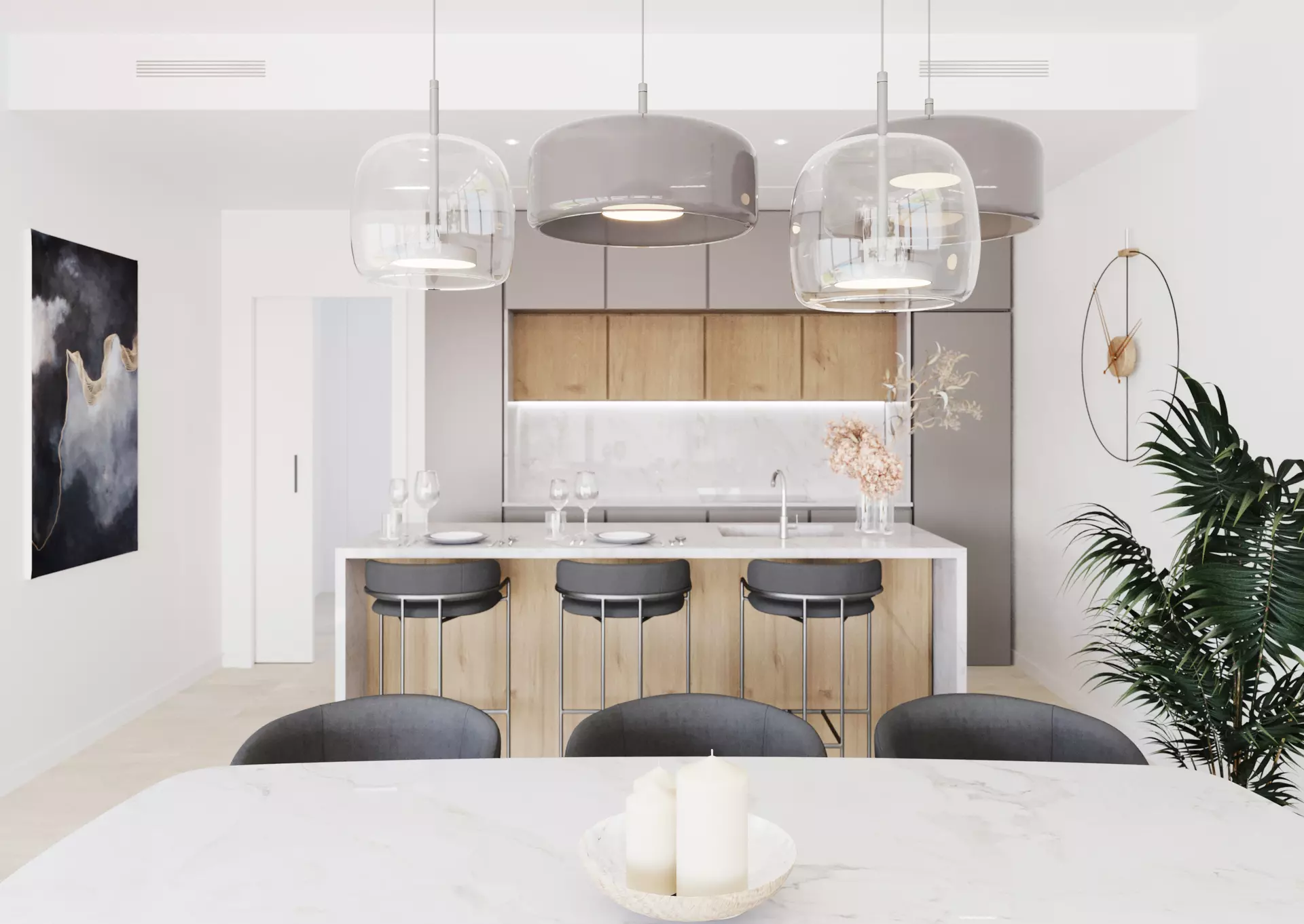Now, let’s head indoors. The interiors of the villas in Polop are crafted with your comfort and style in mind. The open-concept kitchens are fully equipped with modern appliances, making meal prep a breeze. Whether you’re hosting a dinner party or enjoying a quiet night in, these kitchens are both functional and stylish, featuring everything you need to whip up your favorite dishes.
