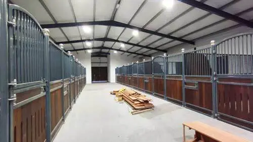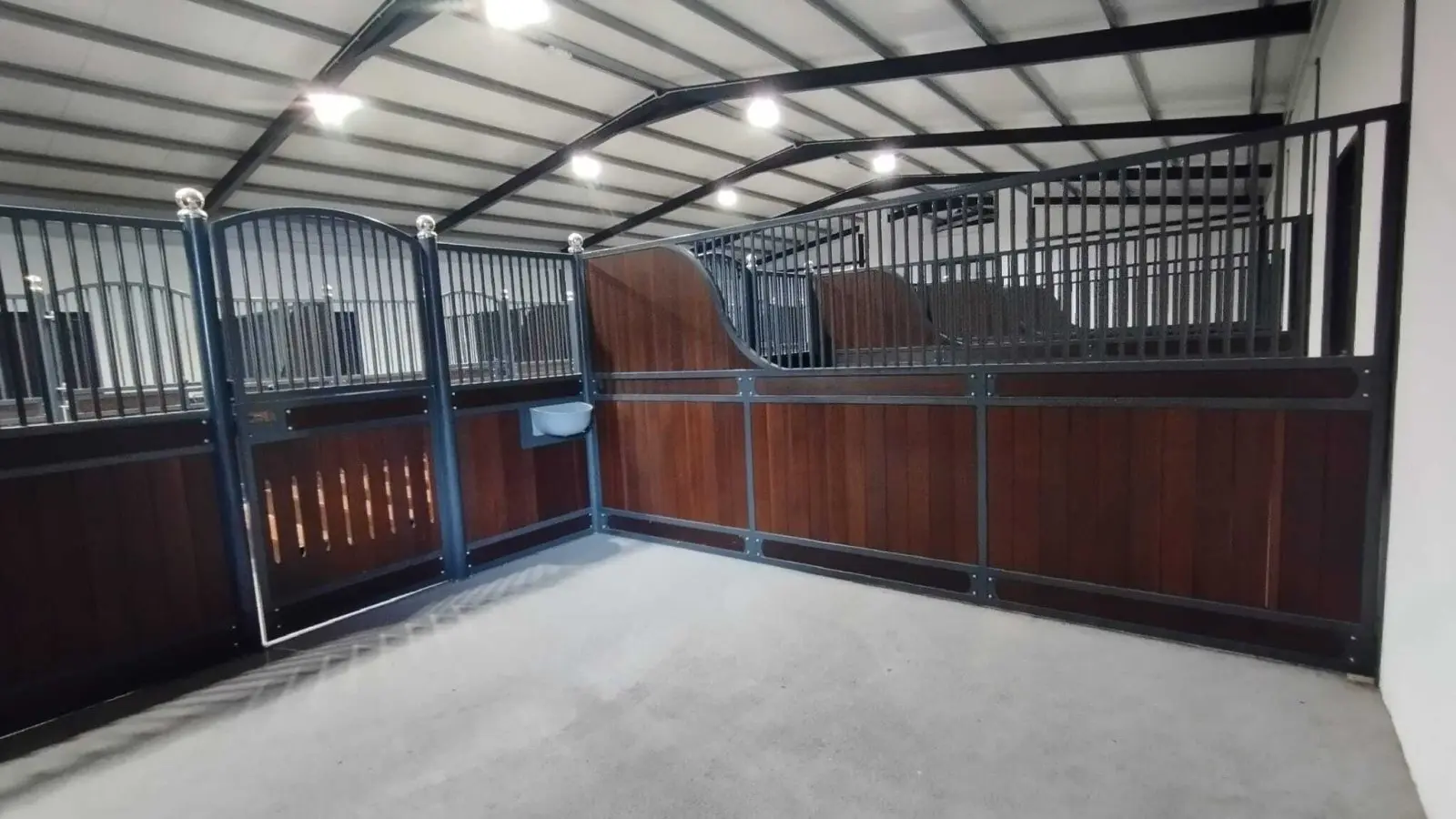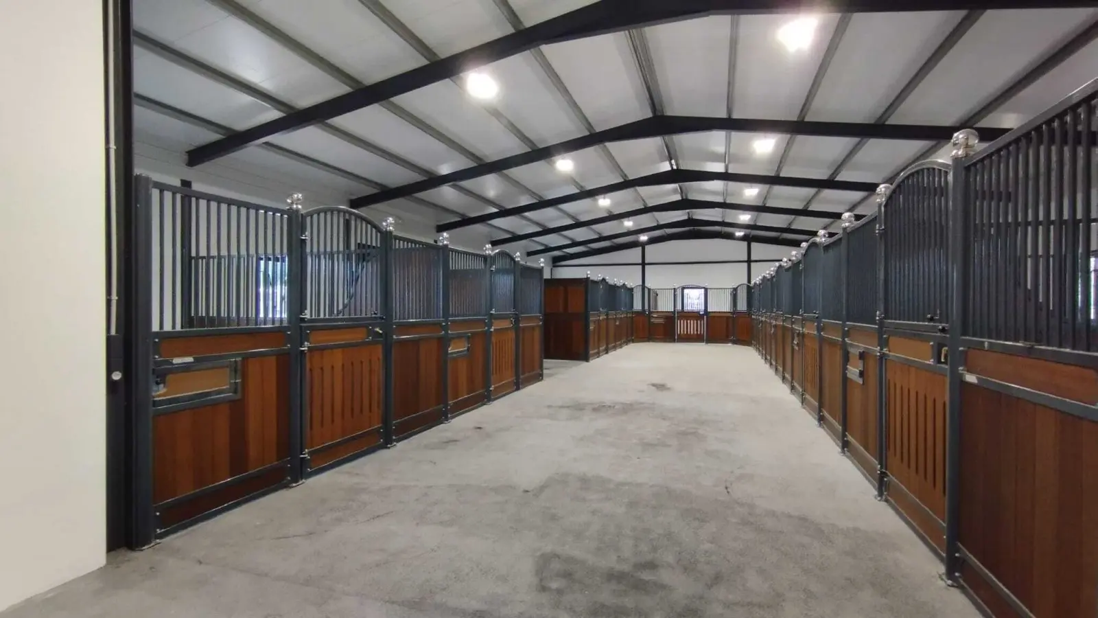 The property includes 26 spacious horse boxes, measuring 4×5 meters each, with outside windows to ensure your horses enjoy plenty of natural light. Directly adjoining these boxes, you’ll find two comfortable grooms’ apartments, offering a convenient living space for your team.