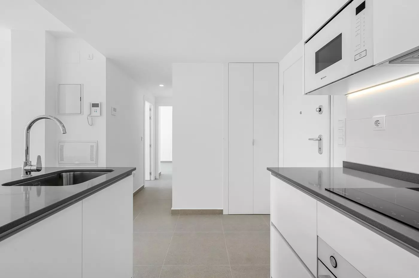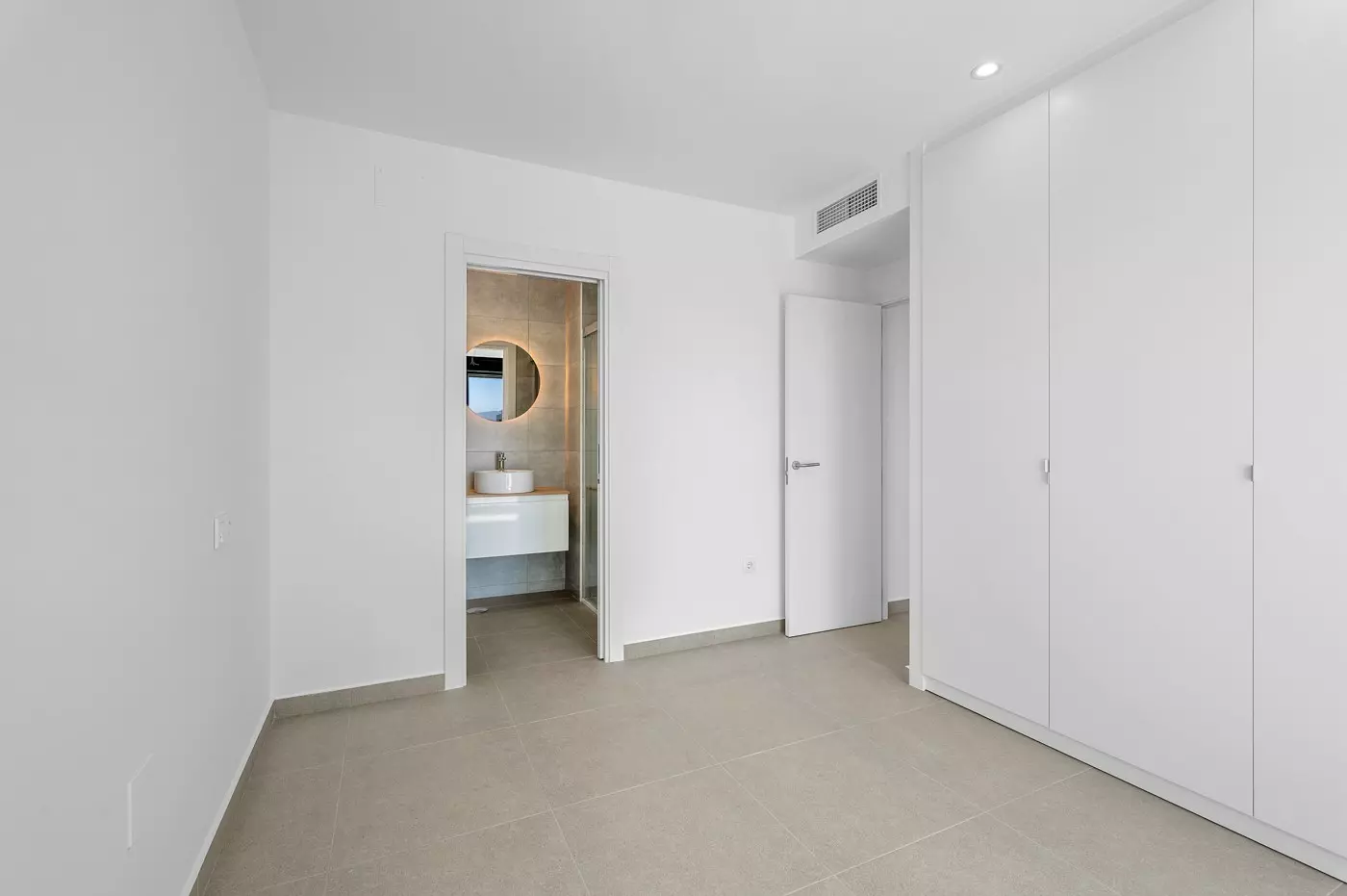 The master bedroom features an en-suite bathroom, while the second bedroom is generously sized and served by a sleek, modern guest bathroom. With modern finishes and thoughtful design, every corner of this apartment feels inviting.