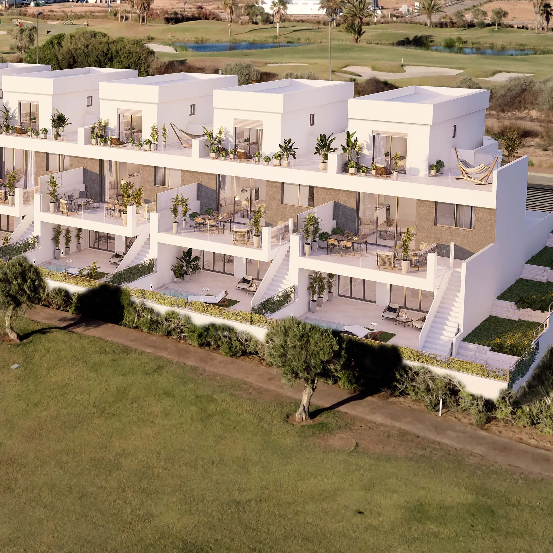 Located in the heart of Los Alcázares, this development offers more than just a stunning home; it provides a lifestyle. Imagine waking up to breathtaking views of the golf course, with beautiful beaches just moments away. For sports enthusiasts or anyone dreaming of a tranquil yet luxurious lifestyle, these homes truly tick all the boxes. And let’s not forget the private swimming pool and solarium that seamlessly integrate with the elegant design.