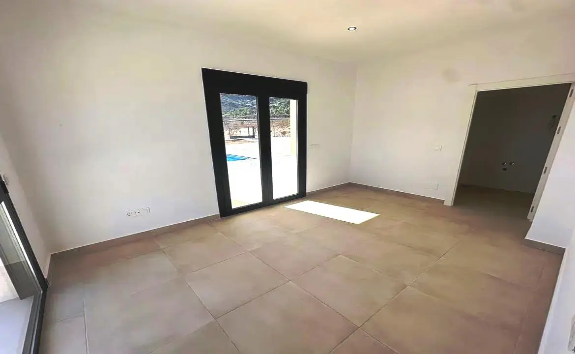 Our newly built detached villas feature three spacious double bedrooms and two well-appointed bathrooms—one of which is an en-suite for that added touch of luxury. With a generous layout of approximately 145m², these homes include a large open-plan lounge and dining area that seamlessly integrates with the kitchen. Large windows and patio doors fill the space with natural light and offer breathtaking views of the surrounding mountains.