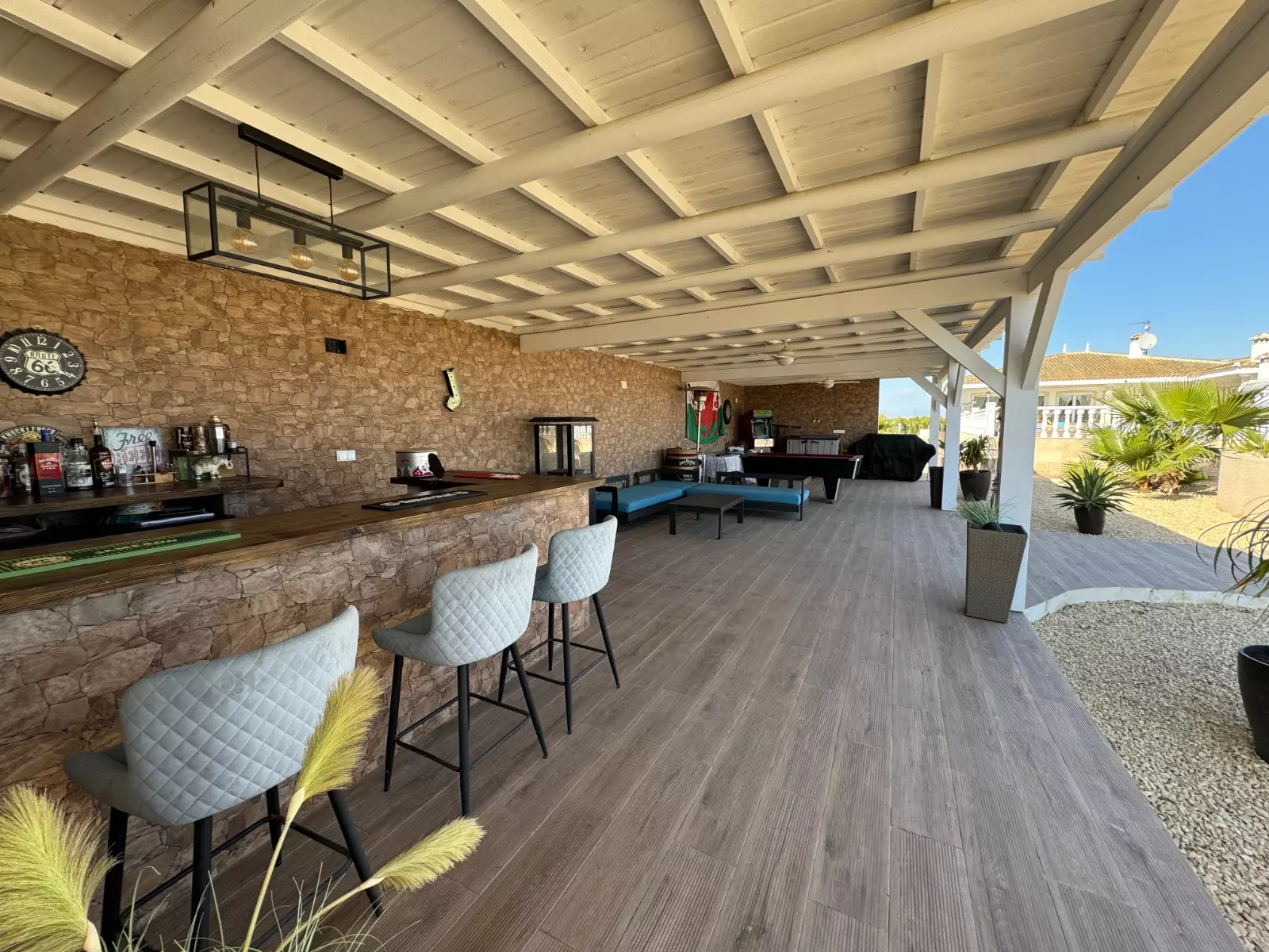 Whether you’re envisioning a cozy family home, a smart investment for rental income, or a serene retreat from the hustle and bustle, this estate checks all the boxes. The main villa shines with its high-end design, boasting three generous bedrooms and three luxurious bathrooms. Your guests will feel right at home in the guest house, which includes three additional bedrooms and one bathroom, perfect for visitors or extended family.