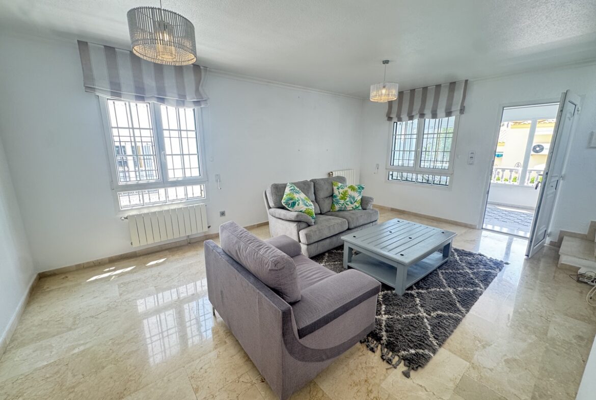 Welcome to your dream Mediterranean oasis! This stunning 3-bedroom detached villa, located in the exclusive community of Rioja I, La Rioja, Los Dolses, Orihuela Costa, has been meticulously renovated to offer you the best of both comfort and style.