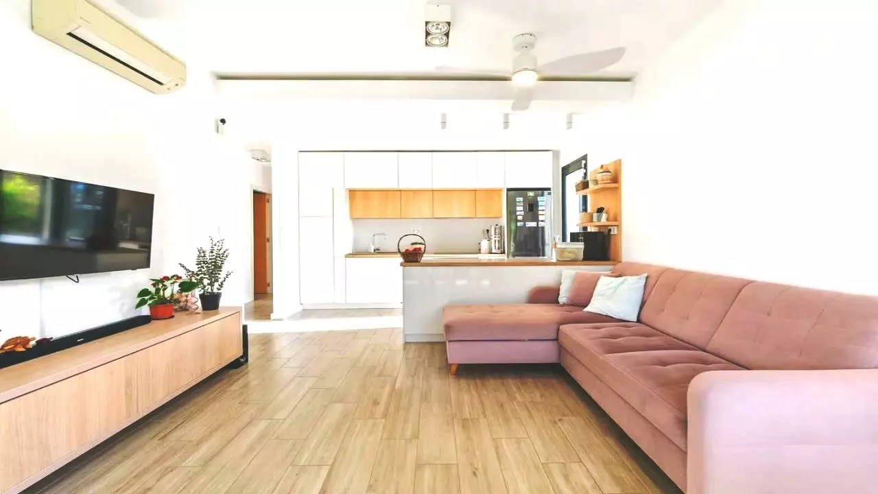The heart of the home is undoubtedly the open-plan kitchen, which is fully equipped for all your culinary adventures. It flows effortlessly into a bright and airy living-dining area, perfect for entertaining friends or spending time with family. High-quality finishes provide the luxe touches that make all the difference. And with air conditioning and heating, comfort is guaranteed no matter the season.