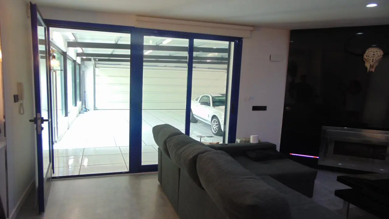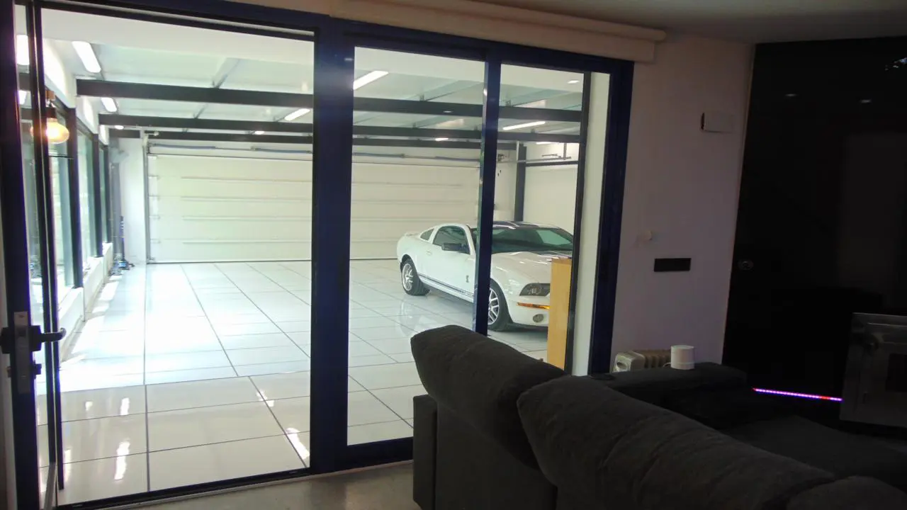 Step inside, and you’re greeted by a modern vibe that flows throughout the villa. The entrance showcases a spacious double garage equipped with an automatic door. Glass windows on one side offer a picturesque view of the enclosed front garden, creating an inviting first impression.