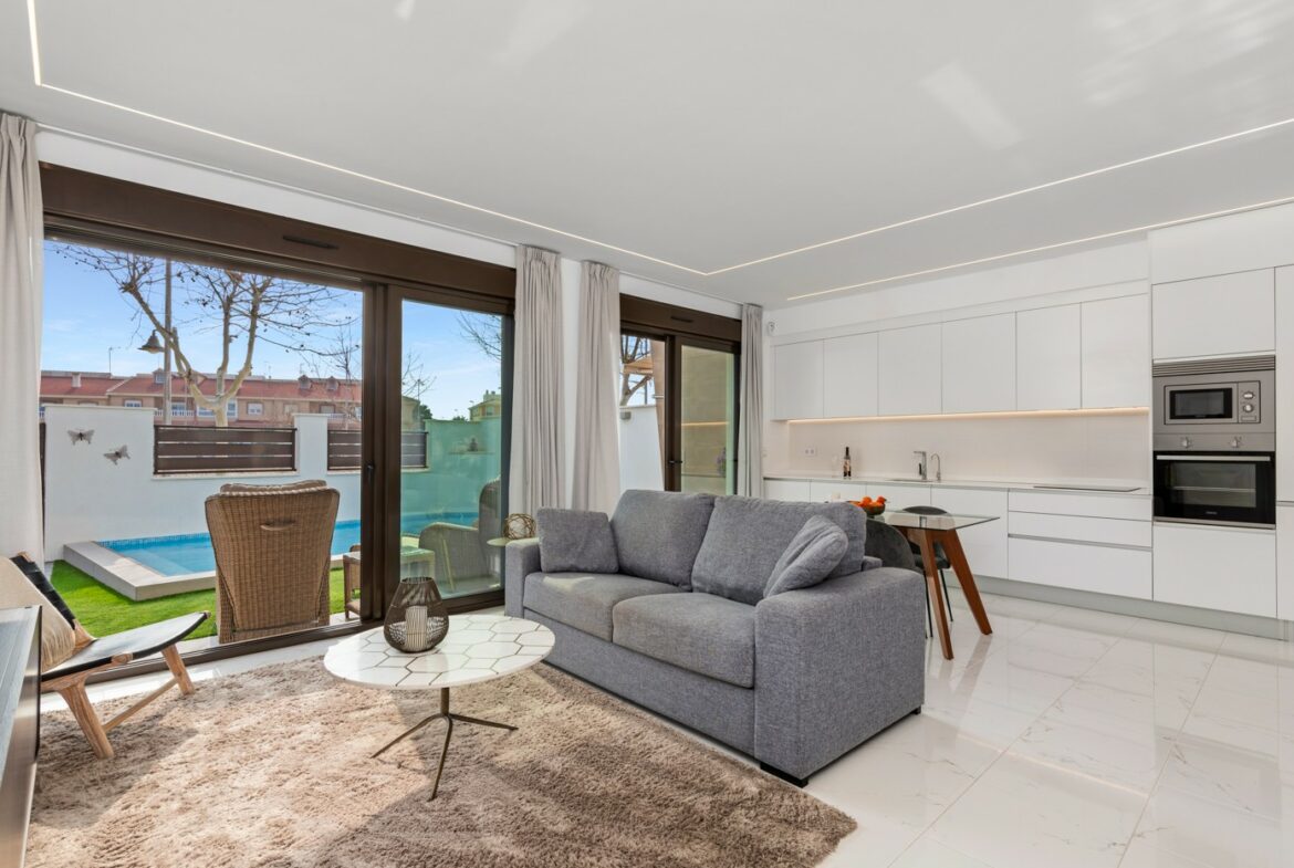 Are you dreaming of a modern home with a private pool, just a stone’s throw from both the town center and the beach? Look no further than this stunning semi-detached villa, built in 2019. With a perfect south-facing location in the popular area of Pilar de la Horadada, this property places you within walking distance of the lively town center, while only being a short drive from the beautiful Las Higuericas beach.