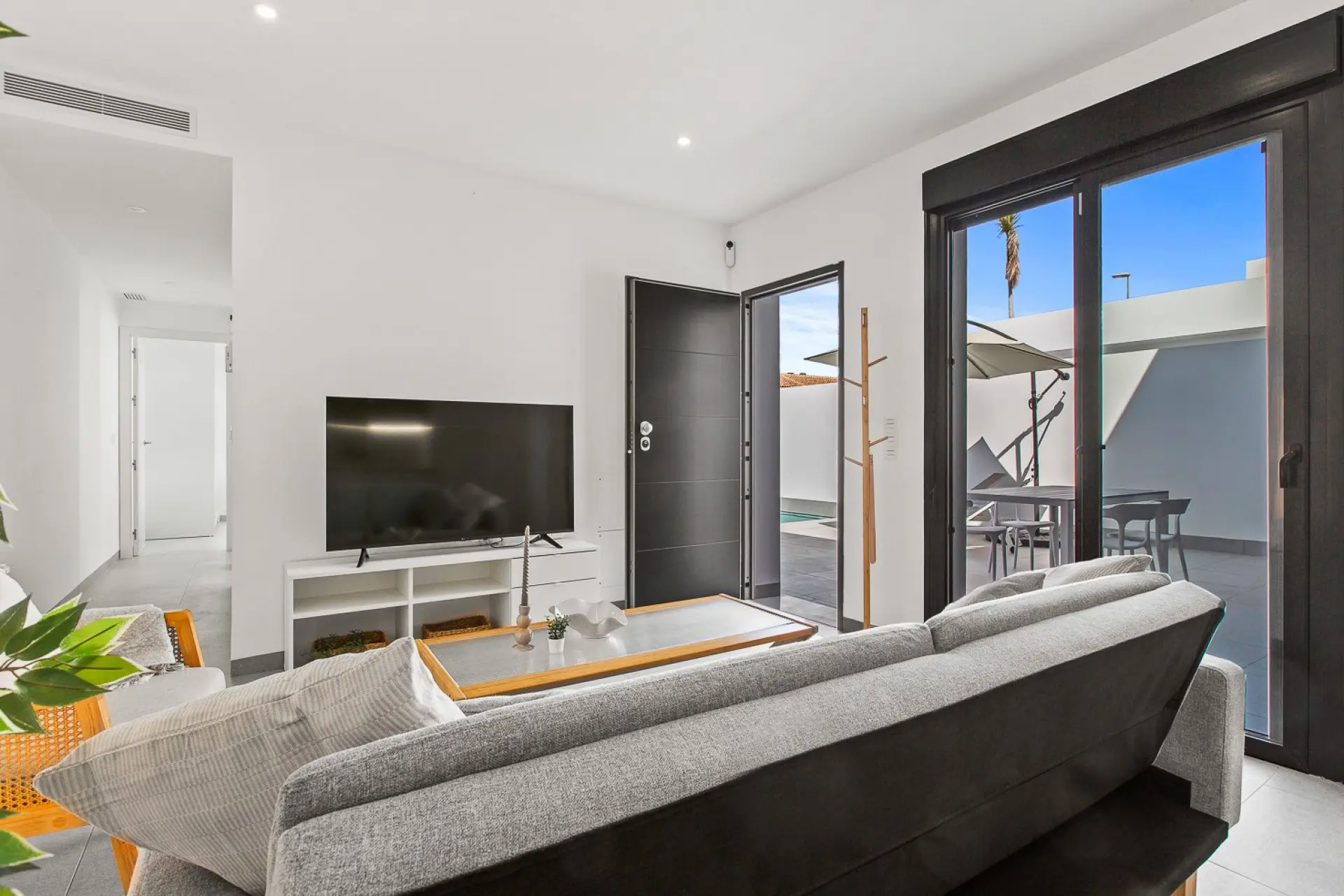 This gorgeous villa features 3 spacious bedrooms and 2 stylish bathrooms, boasting an interior layout that’s both functional and brimming with natural light. You’ll love the open-plan living and dining area that flows effortlessly into a sleek, fully fitted kitchen. It’s the perfect spot for cozy family dinners or entertaining guests, all while surrounded by quality materials and finishes. Think ceramic flooring, double-glazed windows, and energy-efficient systems that make living here a breeze.