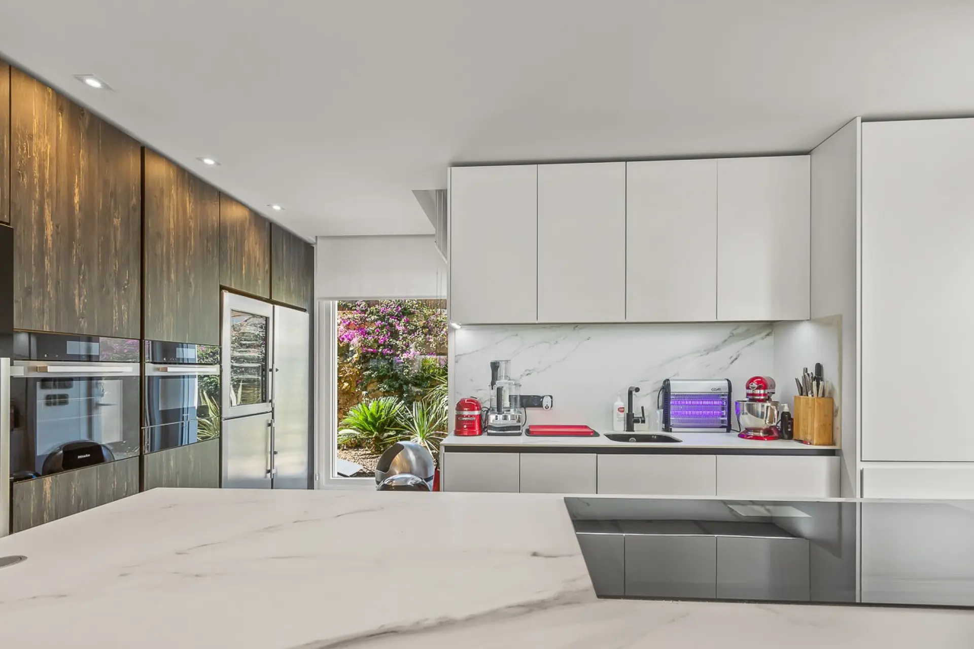 Are you a culinary enthusiast? Then get ready to love the open-plan kitchen, equipped with high-end Miele appliances that make cooking a delight. The strategic layout offers direct access to a beautifully landscaped garden, making it easy to host outdoor dining sessions under the stars or simply relax on a sunny afternoon.