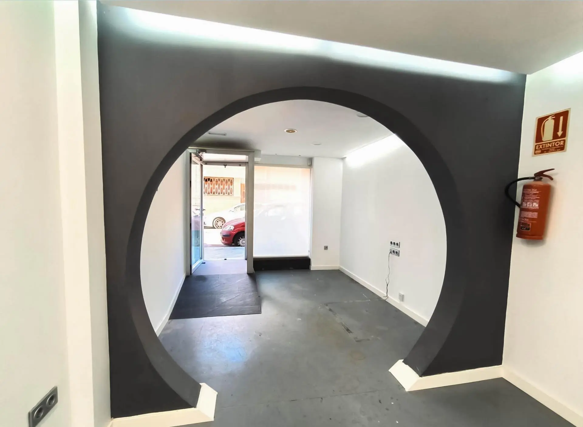 There’s a light patio that provides natural light to the interior. The entrance features an electric opening door, adding convenience to accessibility. The showcase window allows for visibility of the products or services offered, enhancing the commercial potential of the space.