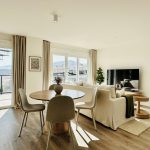 This property is suitable for couples or professionals seeking a modern and inviting environment. The images depict the possibility of a double bedroom equipped with a dressing area. Additionally, there is a well-designed full bathroom to meet your daily needs, alongside a spacious living-dining area and a large designer kitchen.
