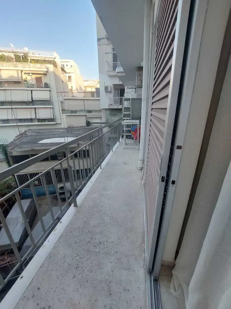 The apartment has an interior layout, providing a neat arrangement of spaces. From the windows, residents can enjoy a view of the city, which adds to the overall experience of living in Athens.