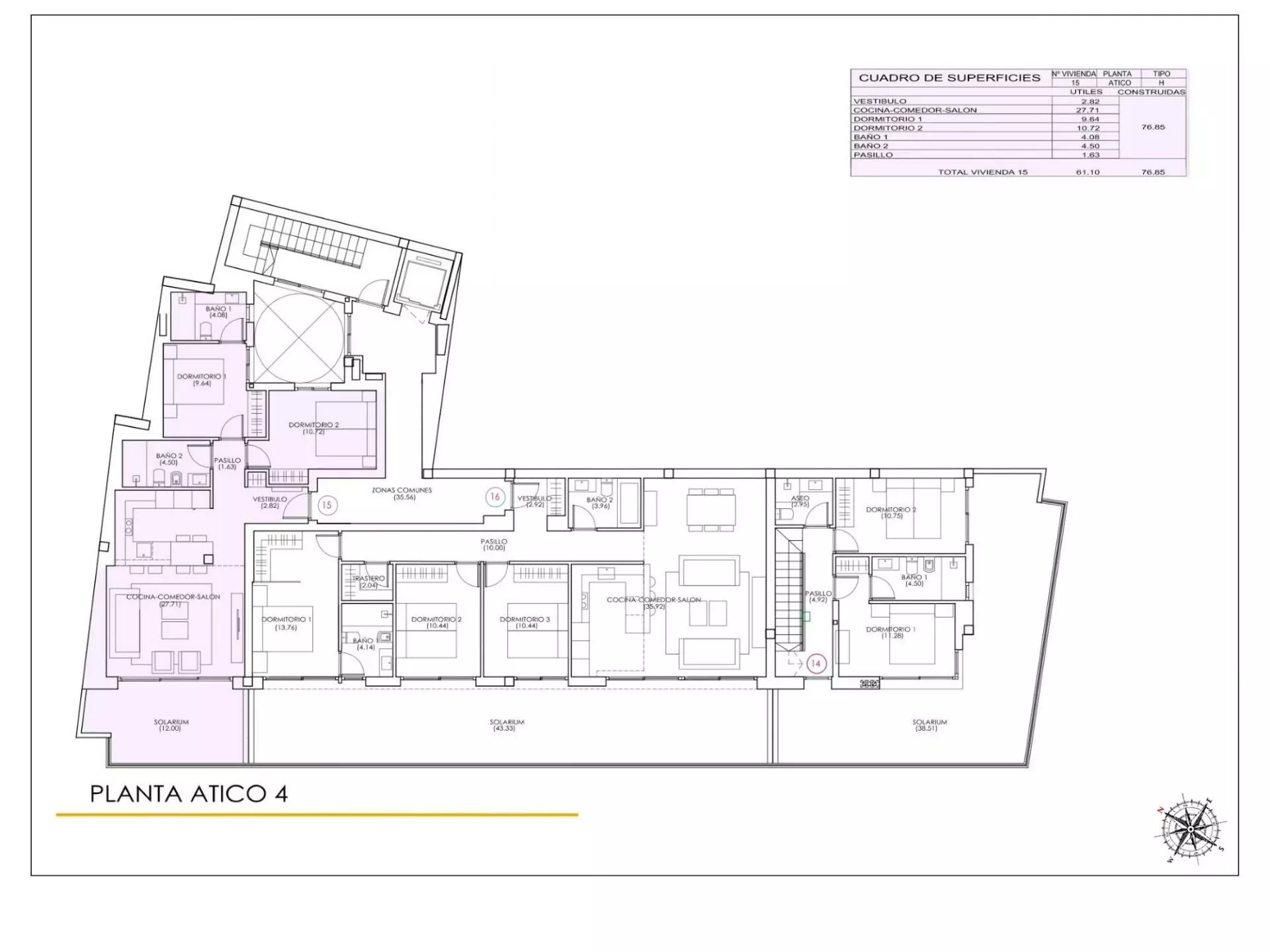 This residential consists of 16 properties available in various configurations: you can find options with 1, 2, or 3 bedrooms, catering to diverse needs. The bathrooms are equally varied, offering either 1 or 2 bathrooms. Each unit is equipped with terraces that range from 7 square meters to 55 square meters, providing outdoor space for residents. The terraces are oriented to face either South or West, making them suitable for enjoying natural light throughout the day.