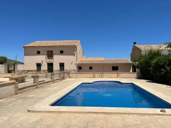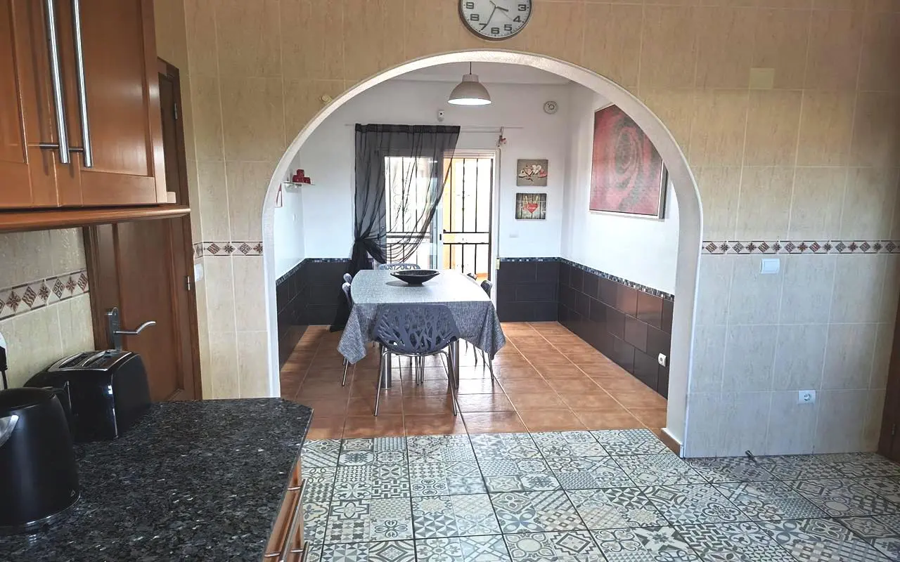 This particular property, identified by the reference WV2568, is located in Catral. It’s a detached country villa that offers five bedrooms and a swimming pool. The house faces south, and it’s situated in an open rural area just outside of Catral. The location provides a sense of privacy and space, along with views of the mountains. Despite its rural setting, it’s only a five-minute drive to the town’s amenities, including shops and restaurants. The area of the property where the pool and the outdoor kitchen are located also faces south. The villa sits on a plot of 2,000 square meters and has 224 square meters of living space spread across a single level. The design focuses on comfort and adaptability.