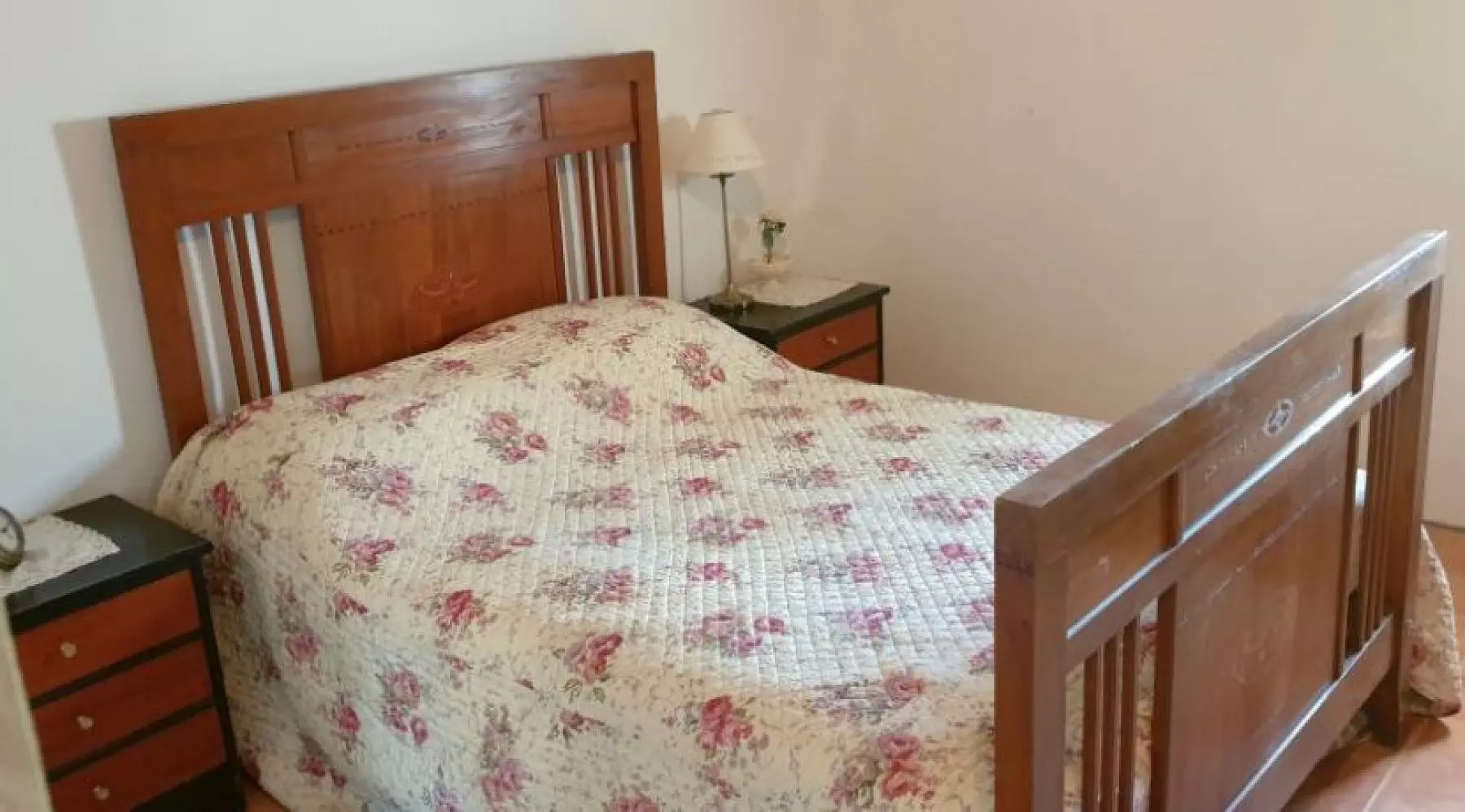 This house features three bedrooms and one bathroom, making it suitable for a variety of living arrangements. The layout includes a hallway that connects all the main areas, providing a logical flow throughout the home. The lounge area comes equipped with a fireplace, perfect for colder evenings or just a touch of warmth.