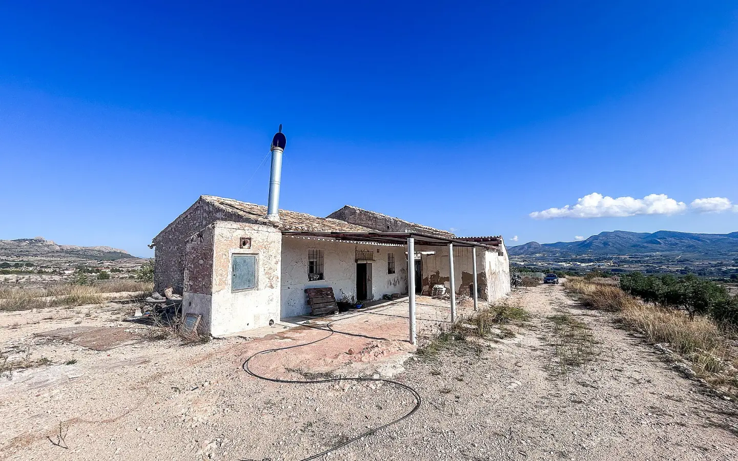 If you are looking for a project that combines nature with potential, check out this rustic estate for €150,000. Spanning 22,000 m², the land is planted with olive and almond trees, providing a unique setting that underscores the property’s character.