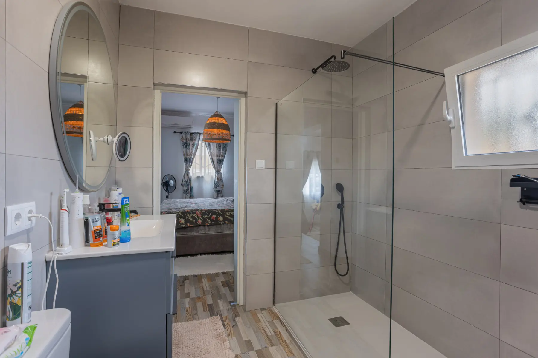 The main house spans 117 m² and includes three bedrooms, one of which has an en-suite bathroom. In addition, there is another bathroom designed for convenience. The layout features an open modern kitchen that connects to a spacious living area, presenting an inviting atmosphere. Storage won’t be an issue here, as there is a large storage room along with an extra shed for additional space.