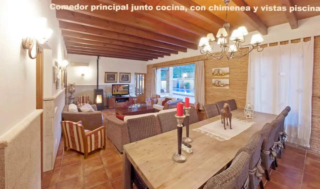 Covering an area of 270 m2, CASA EL SEQUER was reformed in 2005. The layout consists of an entrance hall, a lounge with a fireplace equipped with a pellet burner, five bedrooms, and three bathrooms. A fully equipped kitchen featuring a central island complements the utility and laundry room. The property includes a jacuzzi, a porch, a relaxation area, a private pool, and a garden area. There’s parking space for up to five vehicles.