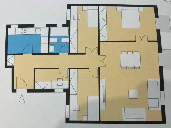 The estate includes two adjoining two-storey houses, which can accommodate a large family or serve as an investment for rural tourism. Together, these houses comprise 6 bedrooms and 2 bathrooms, arranged for efficient use of space. Each floor of the houses is equipped with a fireplace, contributing to a consistently warm atmosphere throughout the year.