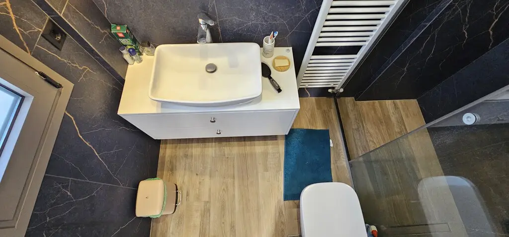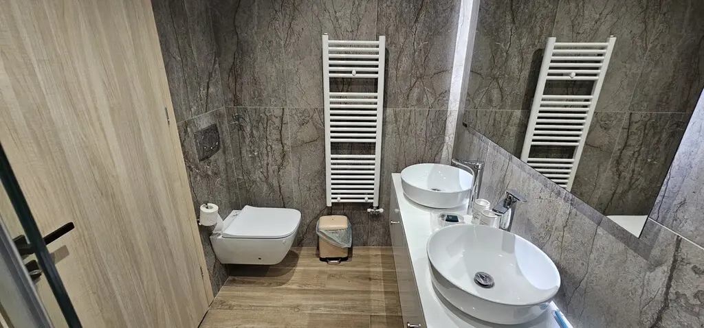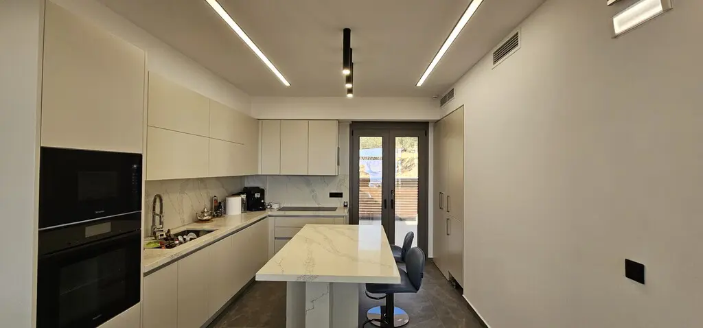 Residents can enjoy impressive views from the windows, featuring the city, sea, mountain, and forest, adding an ever-changing backdrop to daily life. Essential features include solar panels ensuring efficient water heating, air conditioning, and heating for year-round comfort. Moreover, an elevator serves the building, enhancing accessibility.