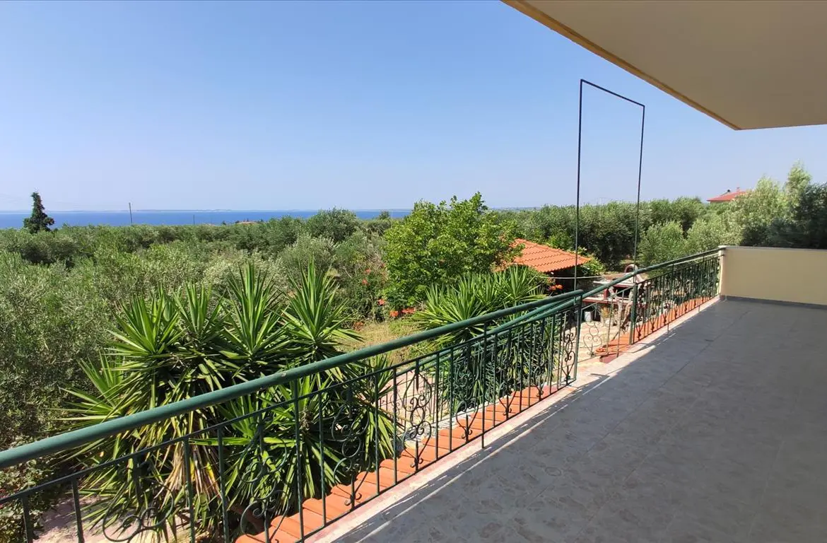 This three-storey house spans 144 square meters and is located in Sithonia, a beautiful part of Chalkidiki. The structure offers ample living space spread across its semi-basement, ground floor, and first floor.