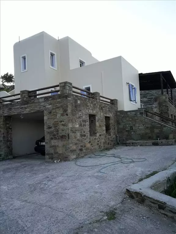 This two-storey house spans 165 square meters and is located in the Cyclades, a stunning cluster of islands in Greece. The ground floor features two bedrooms, a living room integrated with the kitchen, and two bathrooms, offering a functional layout for everyday living.