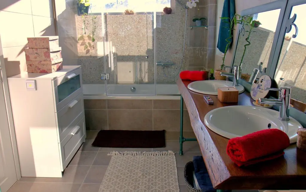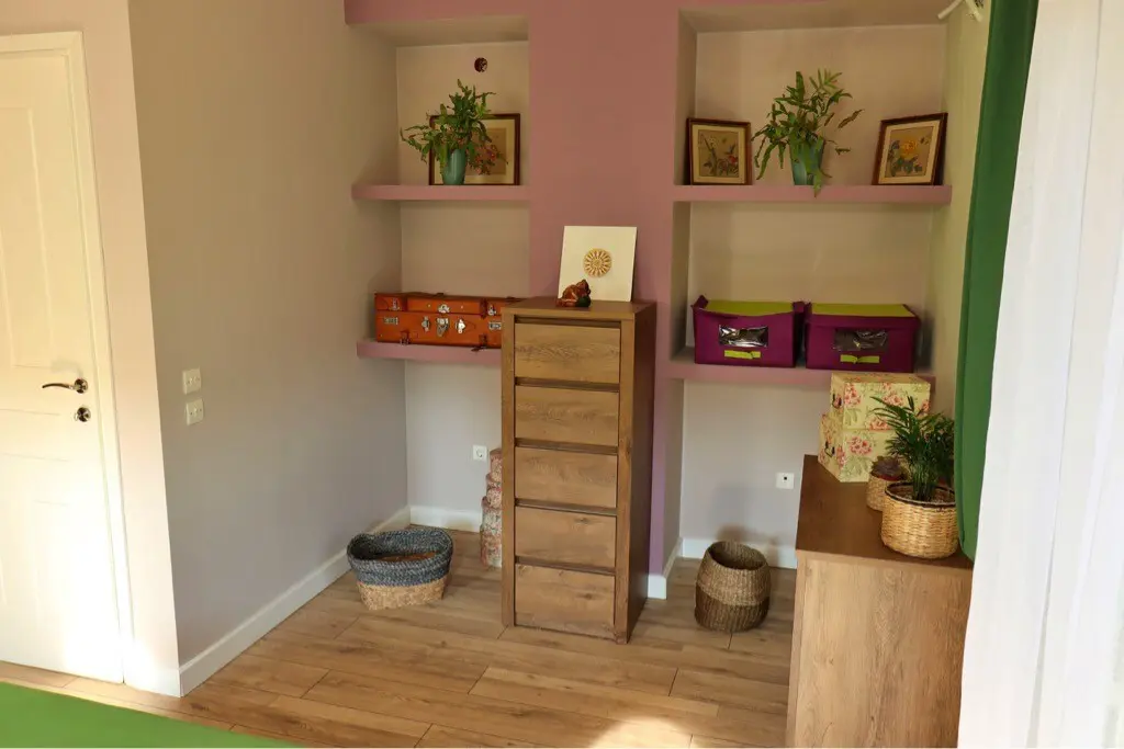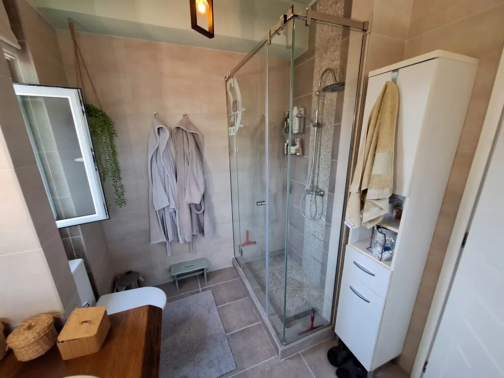 Moving up to the first floor, you will find two bedrooms, perfect for family or guests. Accompanying these bedrooms is one bathroom and another shower WC. This floor successfully balances private spaces with shared amenities, making it practical for multiple occupants.