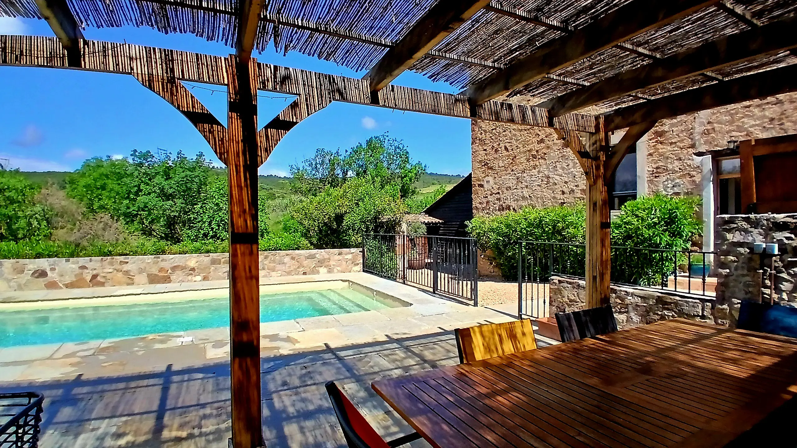 This exceptional property features a meticulously renovated stone barn, now transformed into a livable space spanning 217 m². The renovation was completed with high-quality materials and offers a fully equipped kitchen, along with other well-designed areas to enhance daily living.