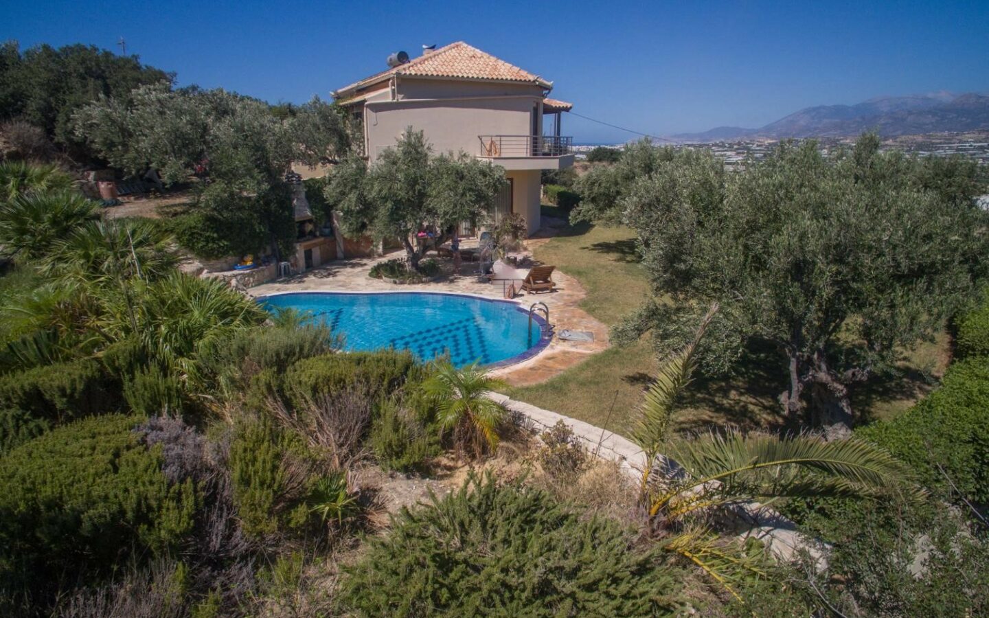 A lovely detached modern villa in an elevated position on the edge of the village of Vainia, East Crete and within a 5 minute drive of the town of Ierapetra and sandy beaches on the south coast. The villa was completed to a high specification in 2008 under the direction of the current owner and has an entry phone system, central heating, solar water heating and double glazing with external shutters. The versatile accommodation is arranged on 2 levels and comprises on the upper level…