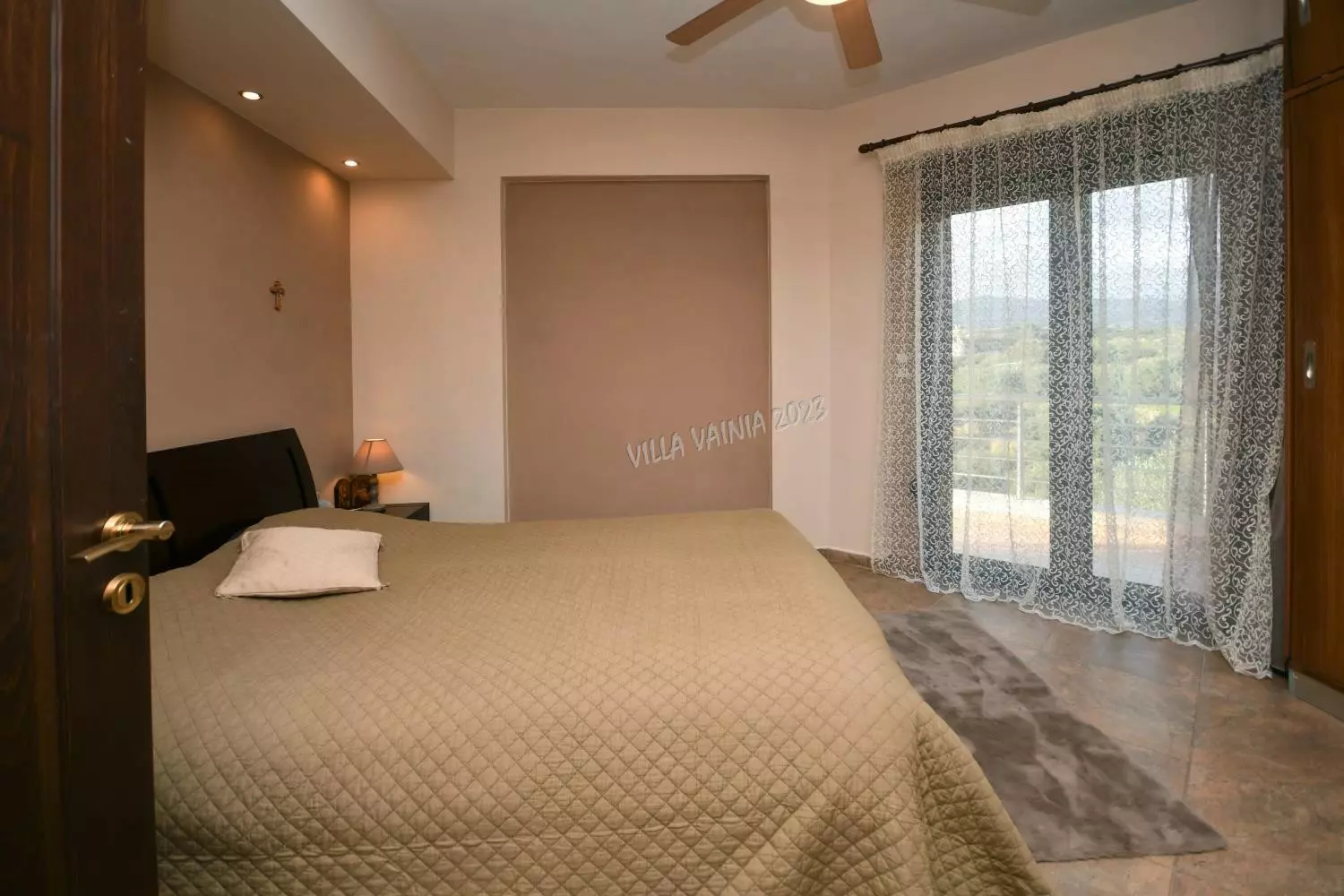 Double sized bedroom with built in wardrobe. Doors to terrace.