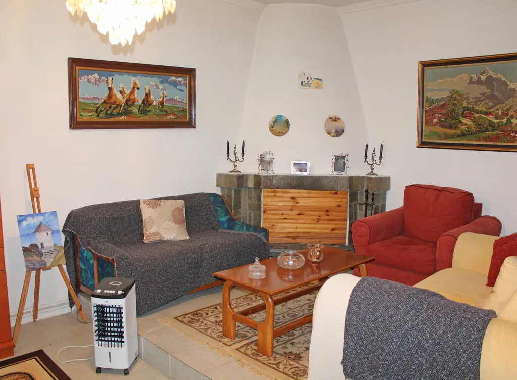 The windows provide a view of the mountain, which adds to the overall appeal of the location. Outdoor enthusiasts will appreciate the barbecue area, perfect for hosting gatherings. This home also includes practical amenities such as air conditioning and heating, ensuring year-round comfort. A fireplace adds an additional element to the living space.